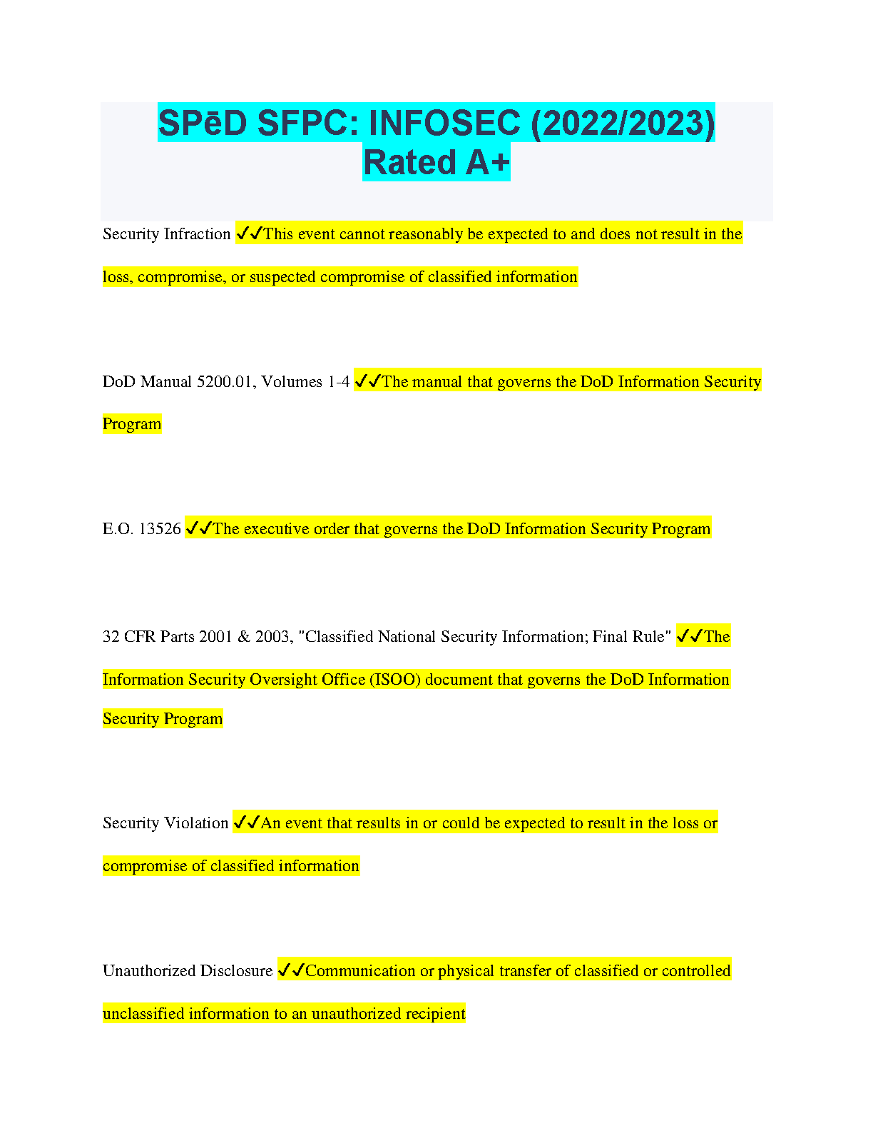 This is the ultimate guide to help students ace their exams on the first attempt. It covers all aspects of SPED SFPC: INFOSEC (2022/2023) in a simple and easy-to-understand format. With this resource, you can avoid resits and feel confident about your understanding.