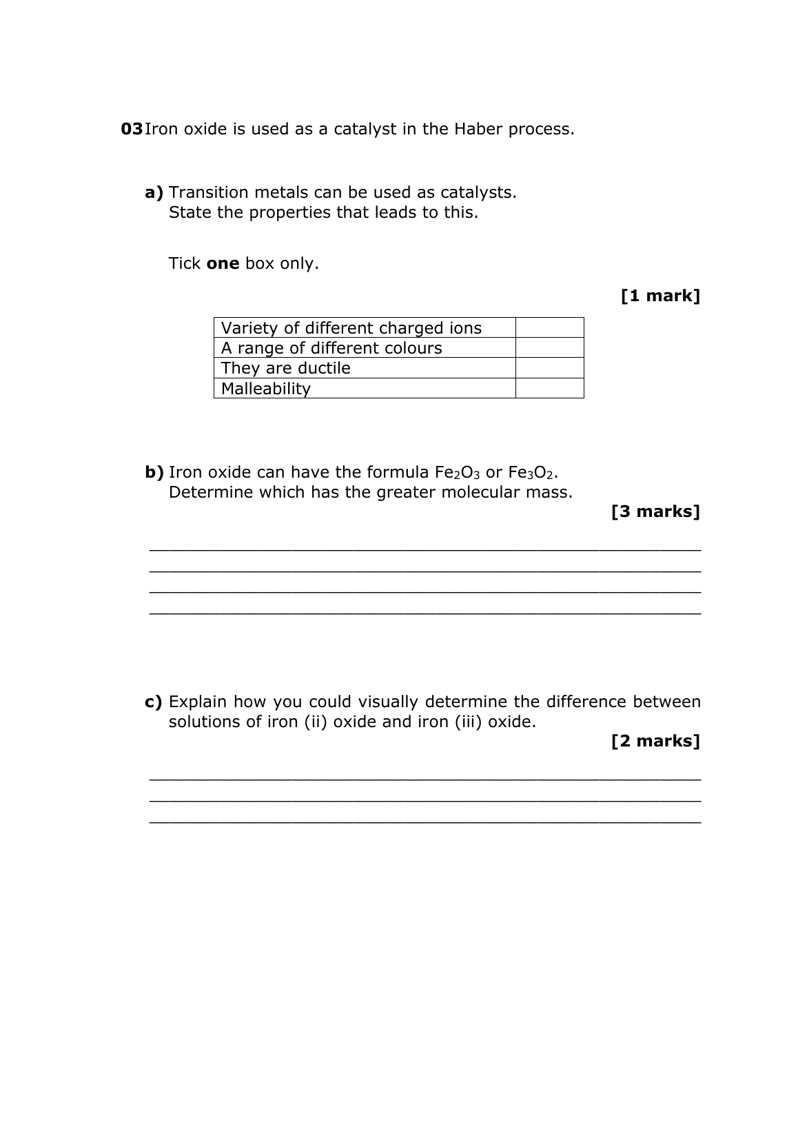 AQA GCSE SEPARATE SCIENCE CHEMISTRY PAPER 1 2023 QUESTION PAPER WITH MARK SCHEME (Foundation Tier)