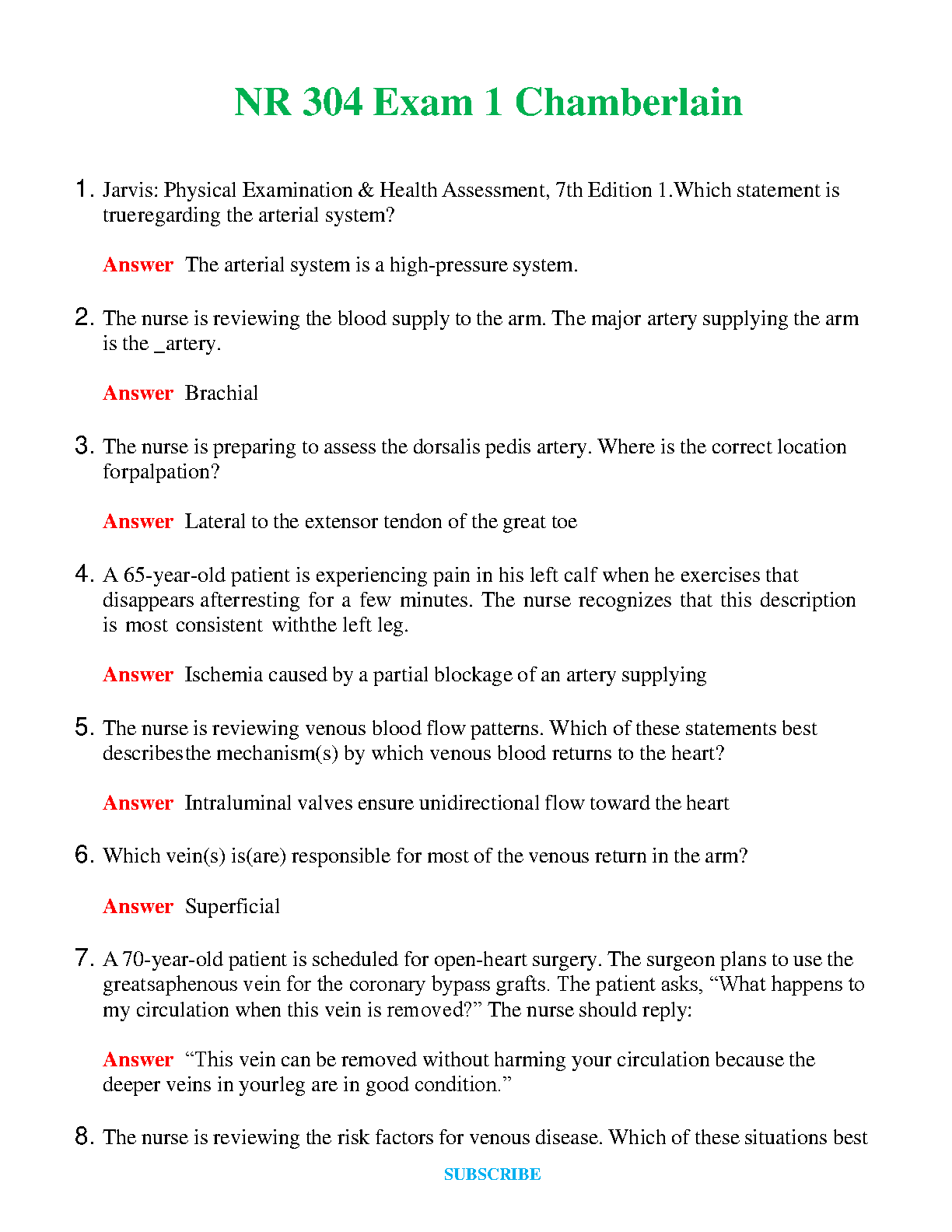 NR 304 Exam 1 Chamberlain - Physical Examination & Health Assessment, 7th Edition by Jarvis