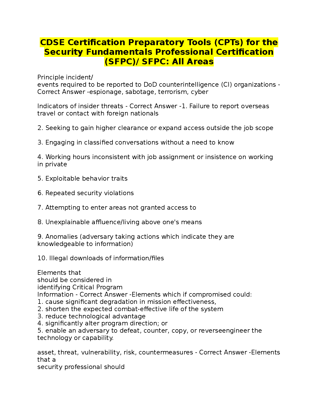 CDSE Certification Preparatory Tools (CPTs) for the Security Fundamentals Professional Certification (SFPC)/ SFPC: All Areas