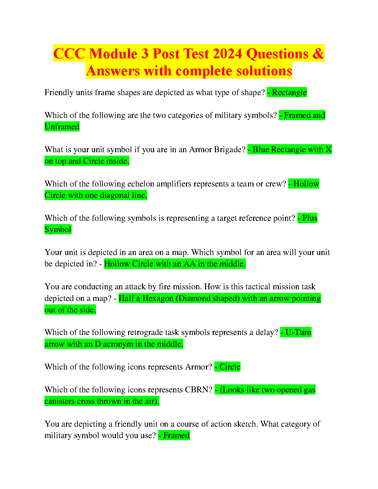 This resource provides comprehensive answers to the CCC Module 3 Post Test 2024. The solutions are complete and easy to understand, making it the perfect tool for students who want to ace their exams on the first attempt.
