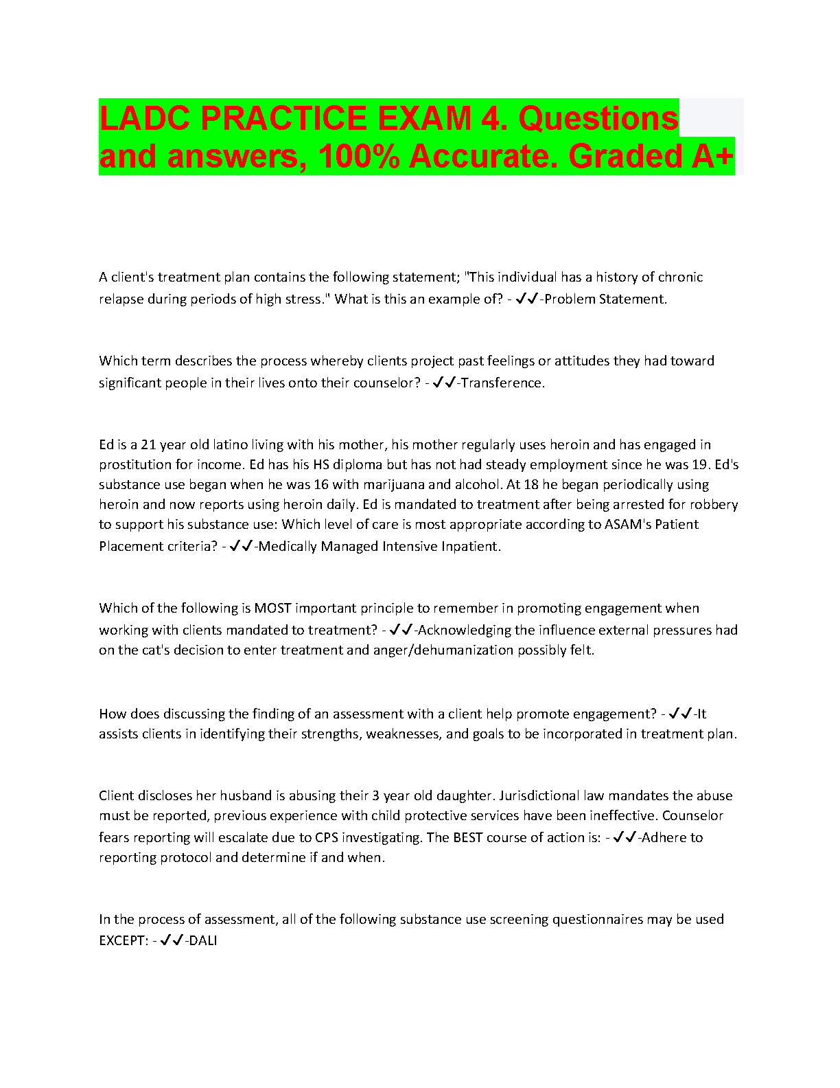 LADC Practice Exam 4: Questions and Answers, 100% Accurate, Graded A+