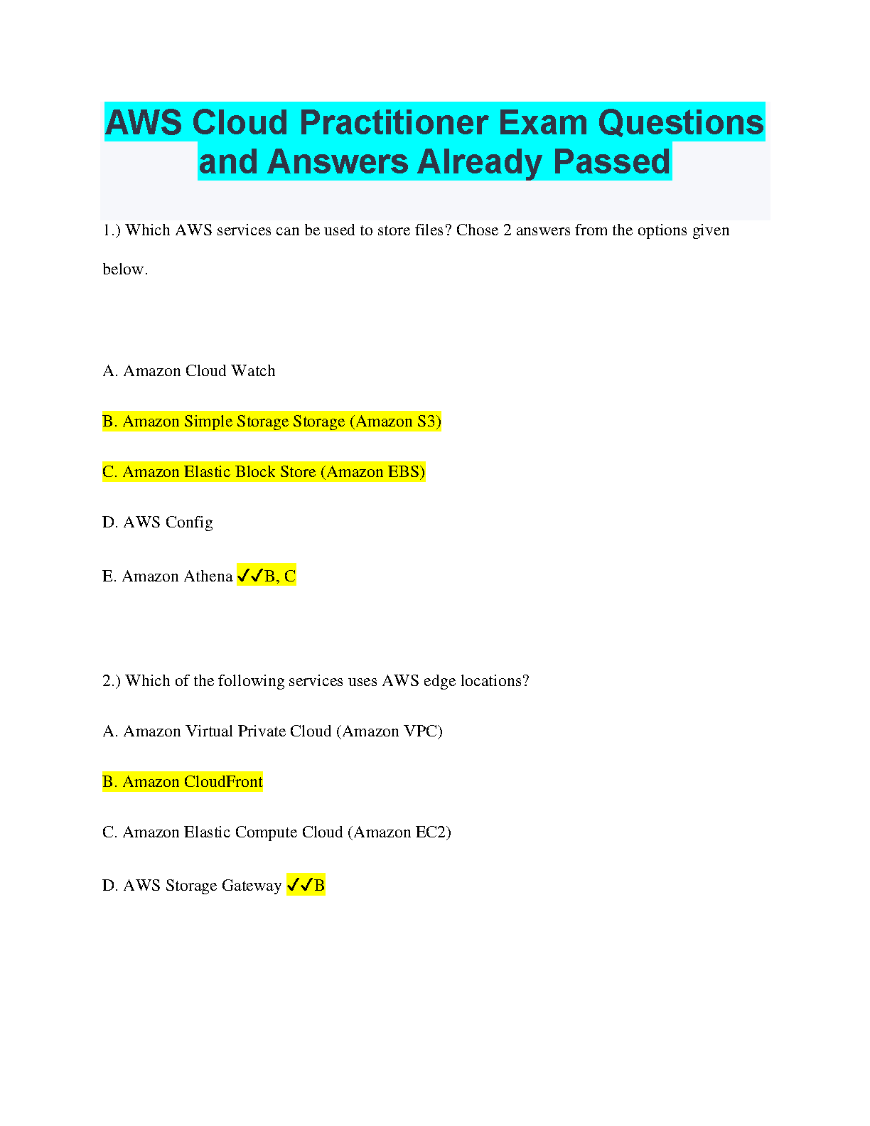 AWS Cloud Practitioner Exam Questions and Answers Already Passed - Edition 2024/2025