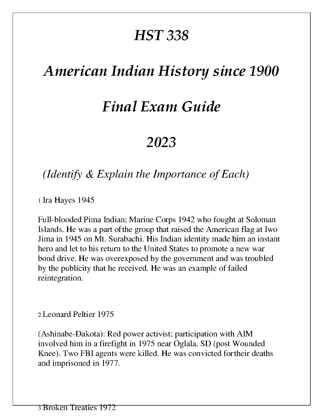 HST 338 American Indian History Since 1900 Final Exam Guide 2023 - Ace Your Exam with This Comprehensive Study Guide