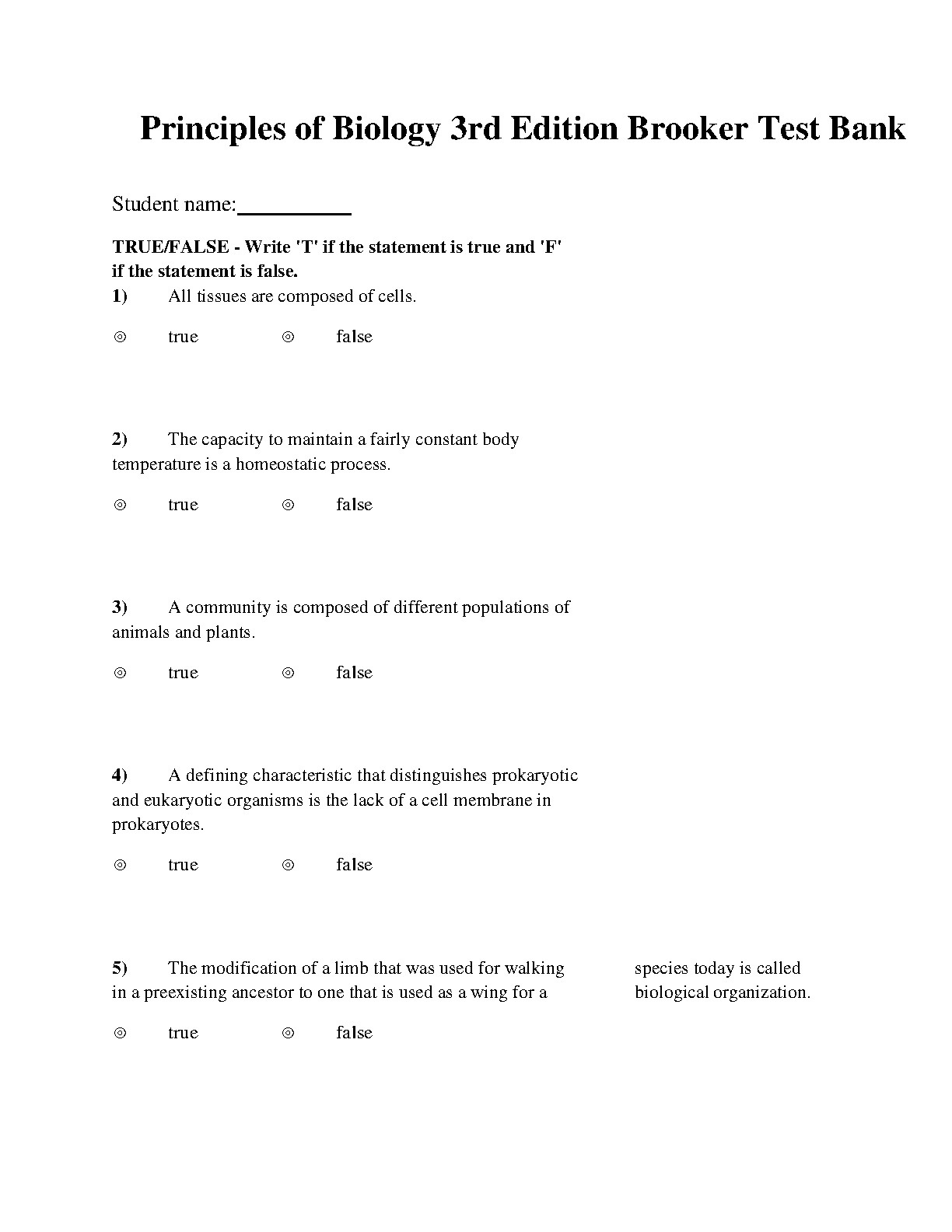 Principles of Biology 3rd Edition Test Bank by Jane B. Reece, Lisa A. Urry, Michael L. Cain, Steven A. Wasserman, Peter V. Minorsky, and Robert B. Jackson