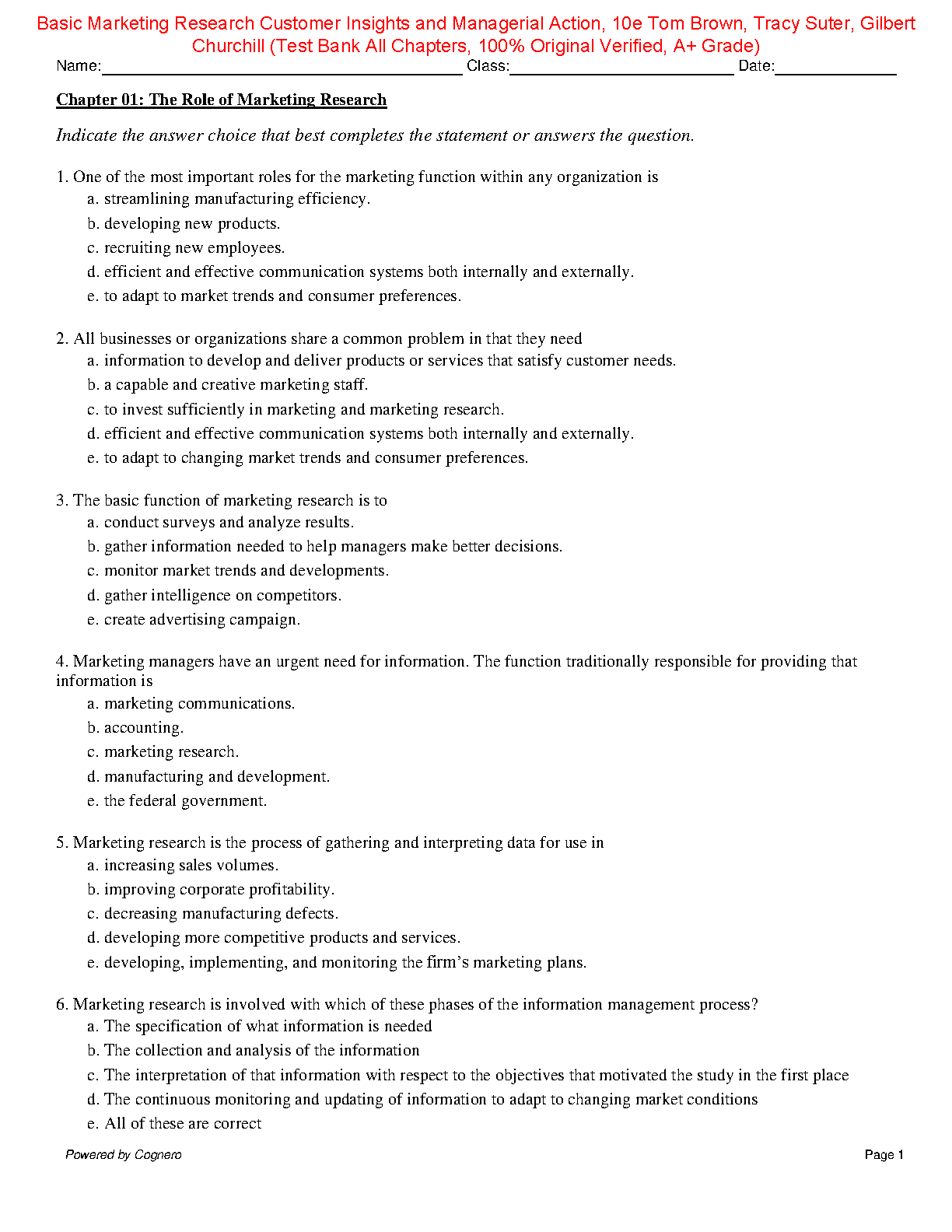 Basic Marketing Research Customer Insights and Managerial Action, 10e Tom Brown, Tracy Suter, Gilbert Churchill (Test Bank All Chapters, 100% Original Verified, A+ Grade)