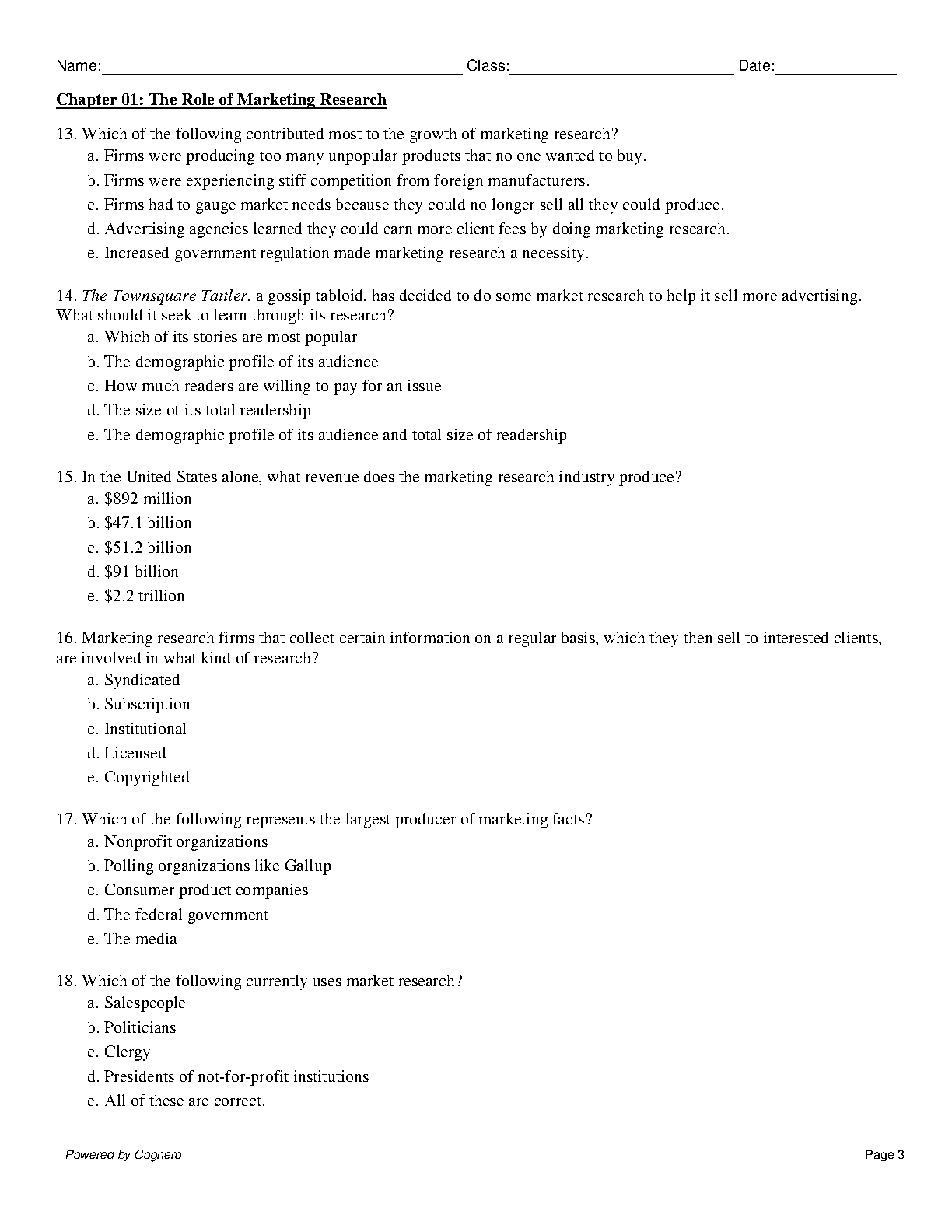 Ace your marketing research course with this comprehensive Test Bank for Basic Marketing Research Customer Insights and Managerial Action, 10e by Tom Brown, Tracy Suter, and Gilbert Churchill. This resource provides you with access to all chapters of the textbook, including multiple choice questions, true/false statements, and application exercises.