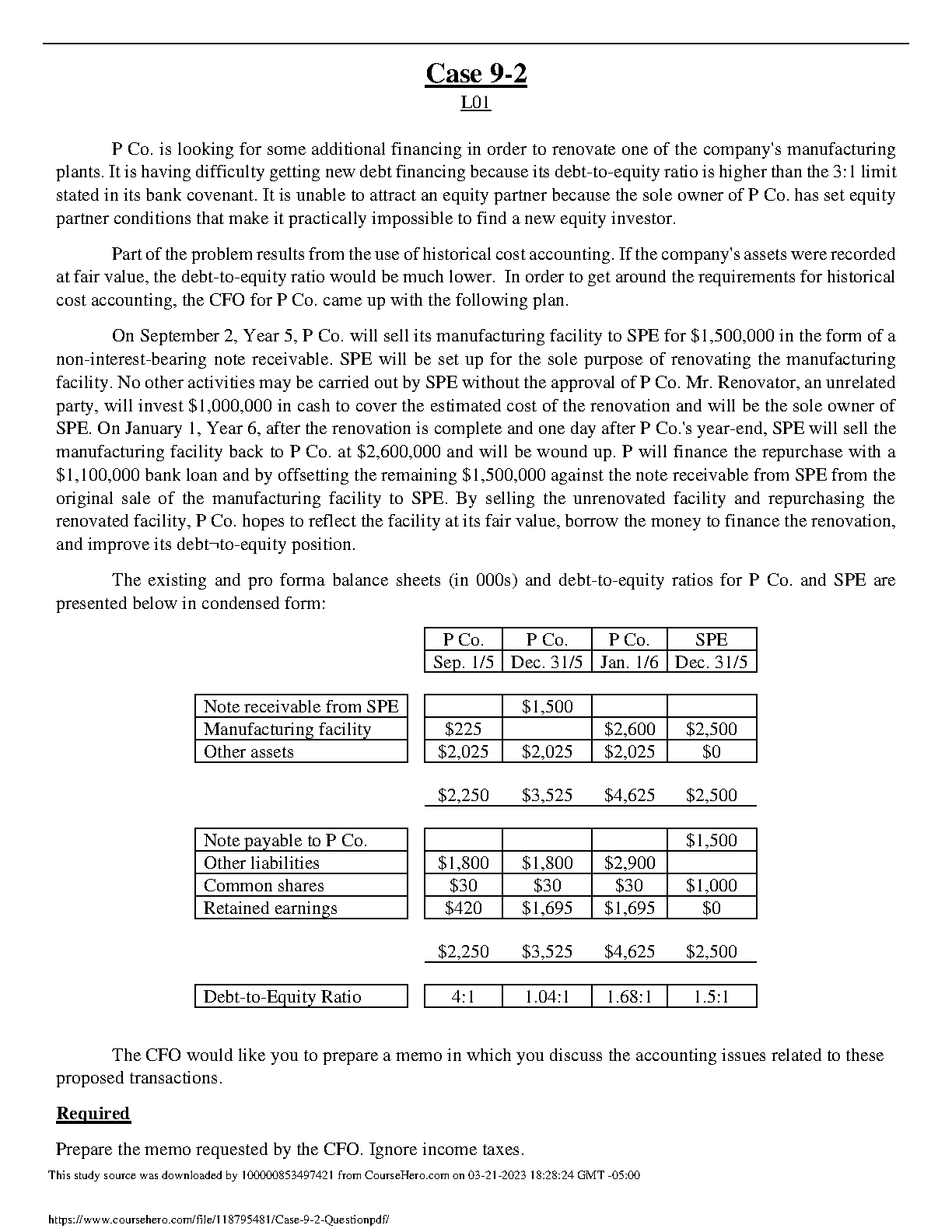 Case 9-2: Debt to Equity Ratio Solution Manual - 9th Edition - Horngren, Datar, Rajan, & Ittelson