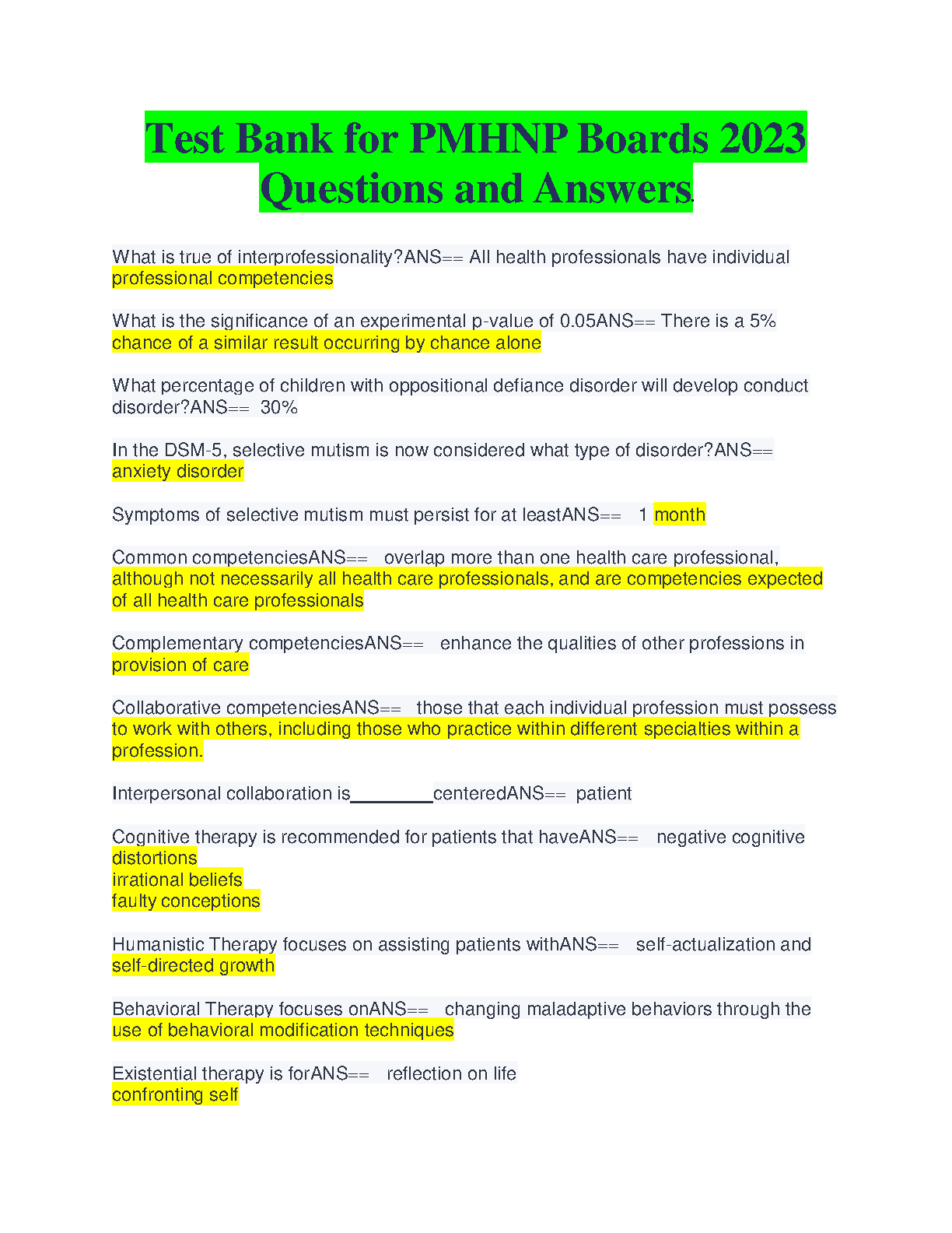 PMHNP Boards 2023 Test Bank Questions and Answers with Explanations by Authors