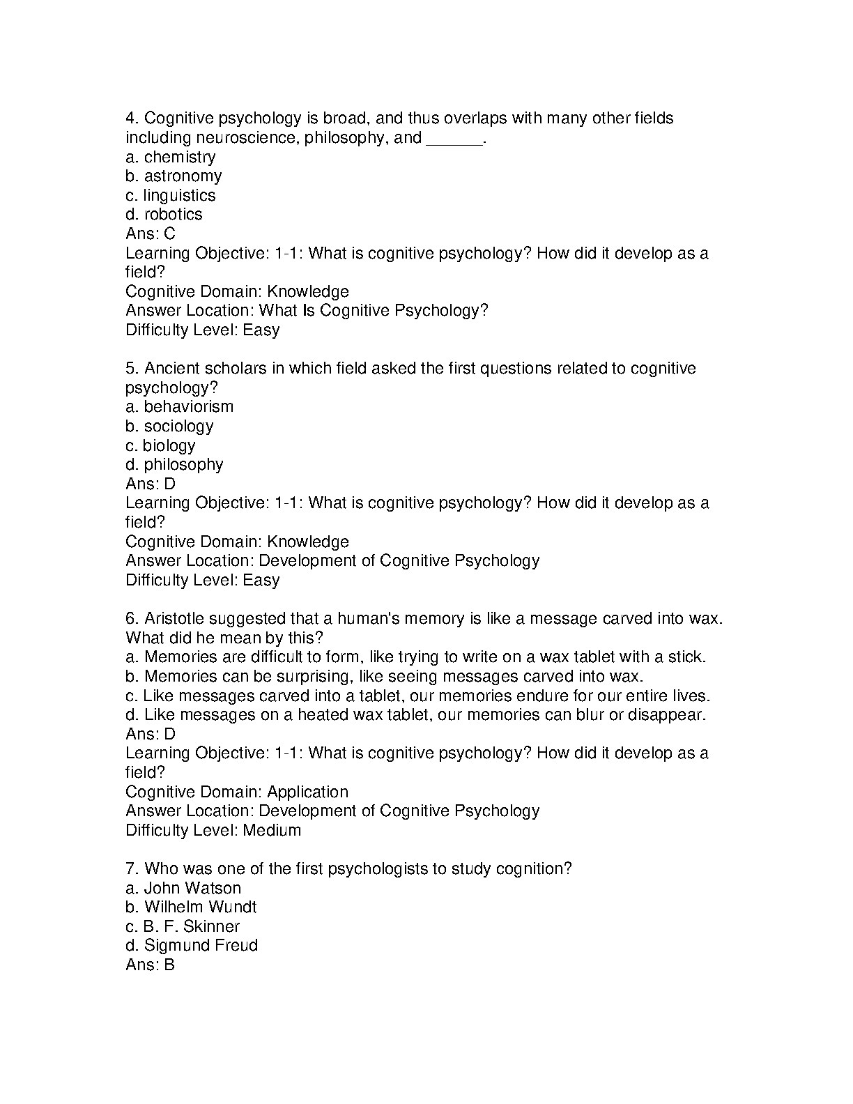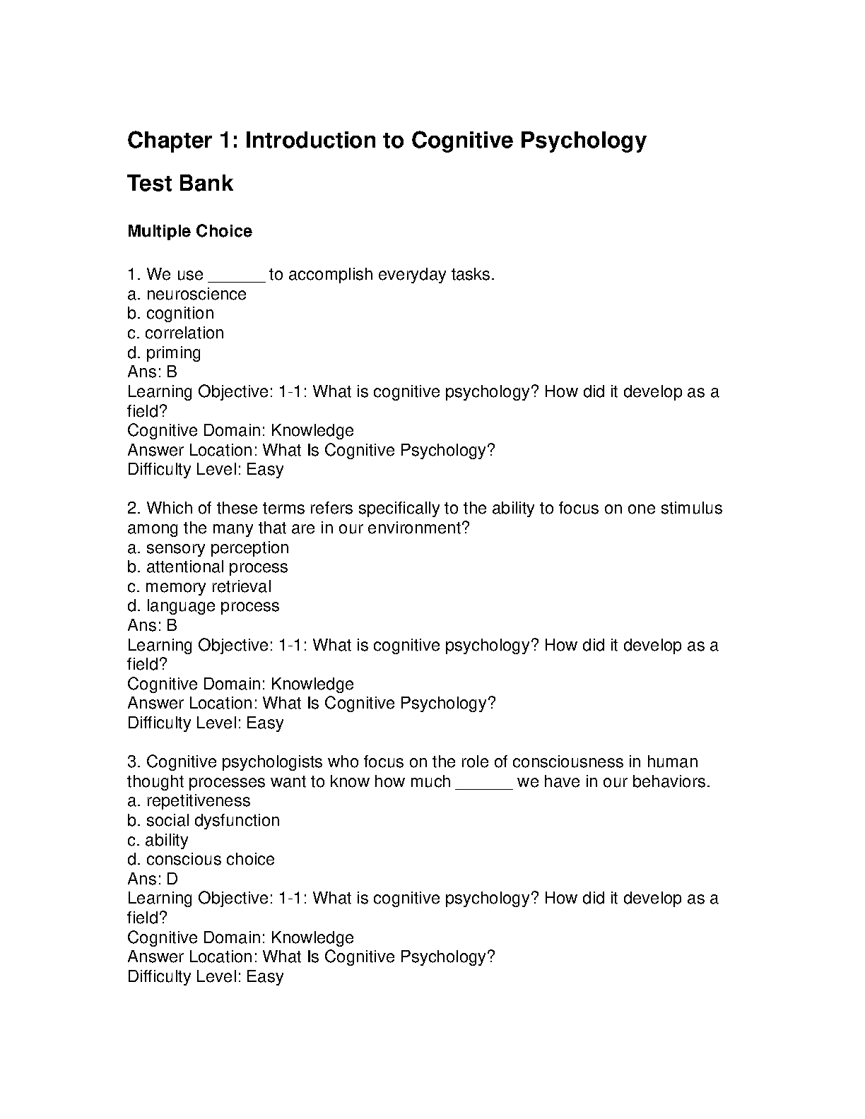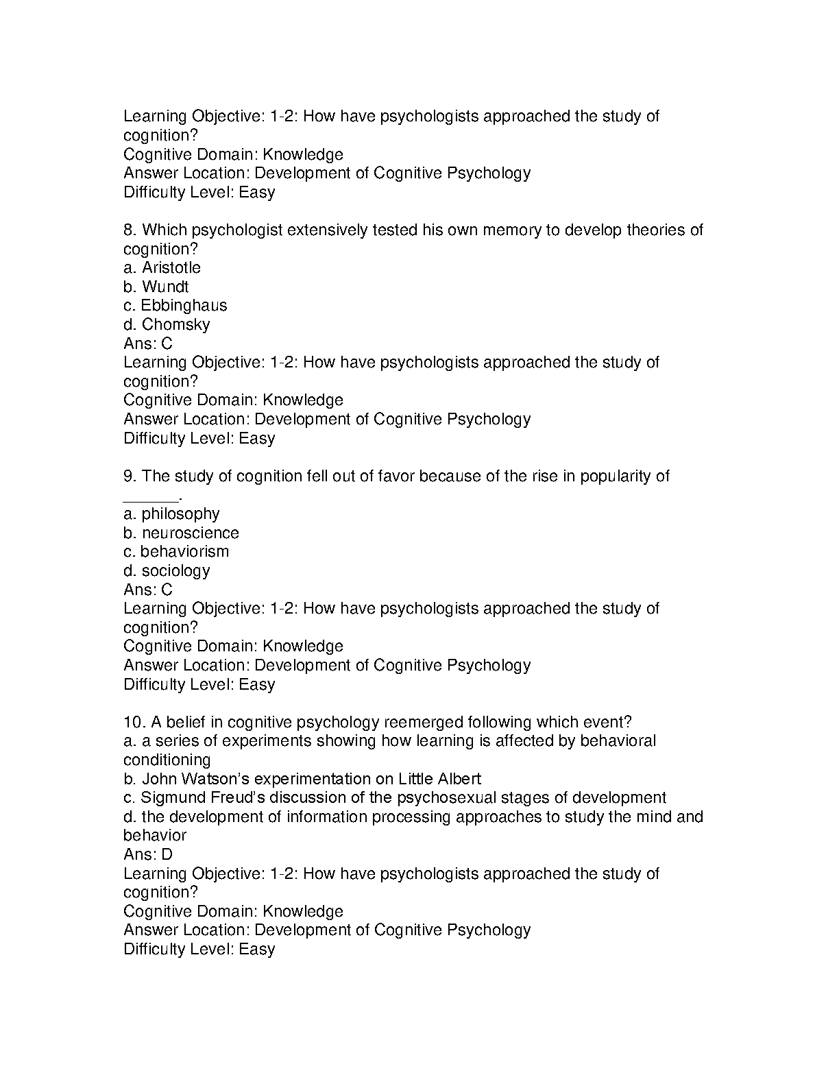Cognitive Psychology Test Bank: Introduction to Cognitive Psychology by E. Bruce Goldstein, Edition 10