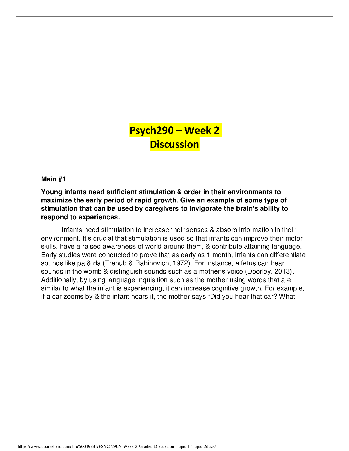 Psych 290 Week 2 Discussion - Stimulating Infant Development - 2024/2025 Edition