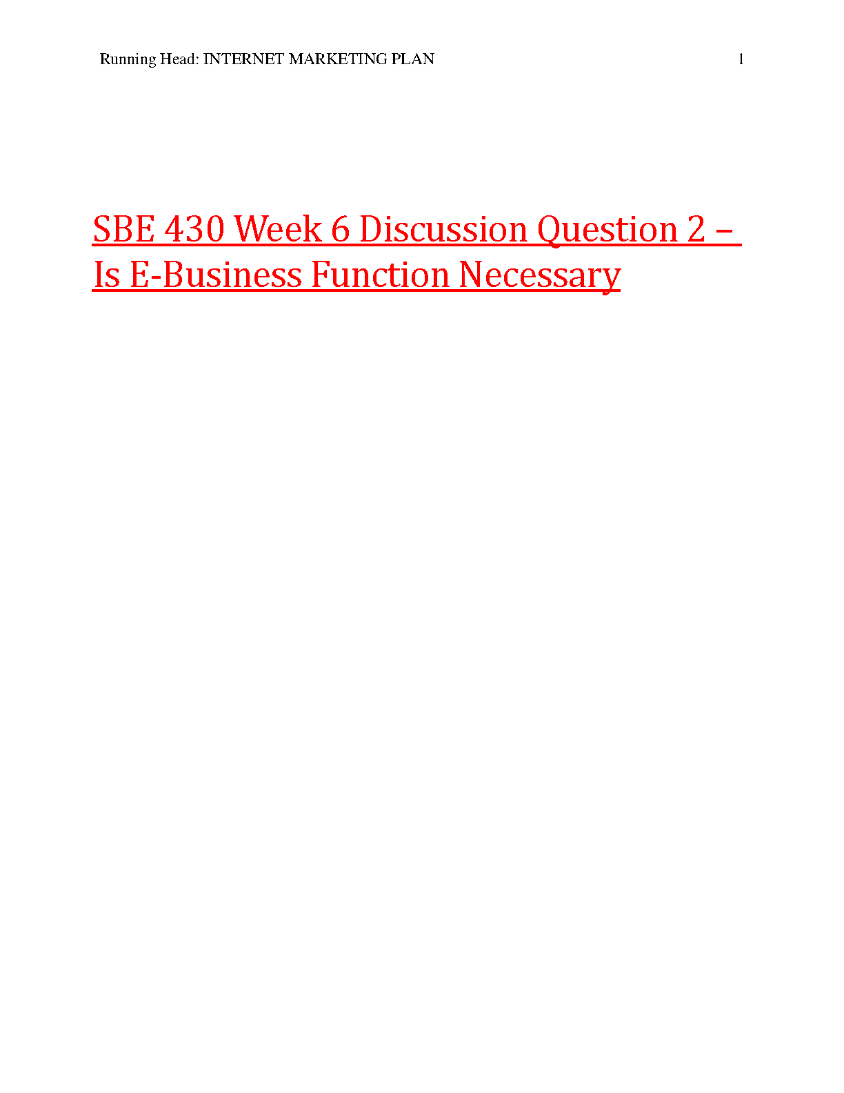 SBE 430 Week 6 Discussion Question 2 - Is E-Business Function Necessary for 2024/2025 Success?