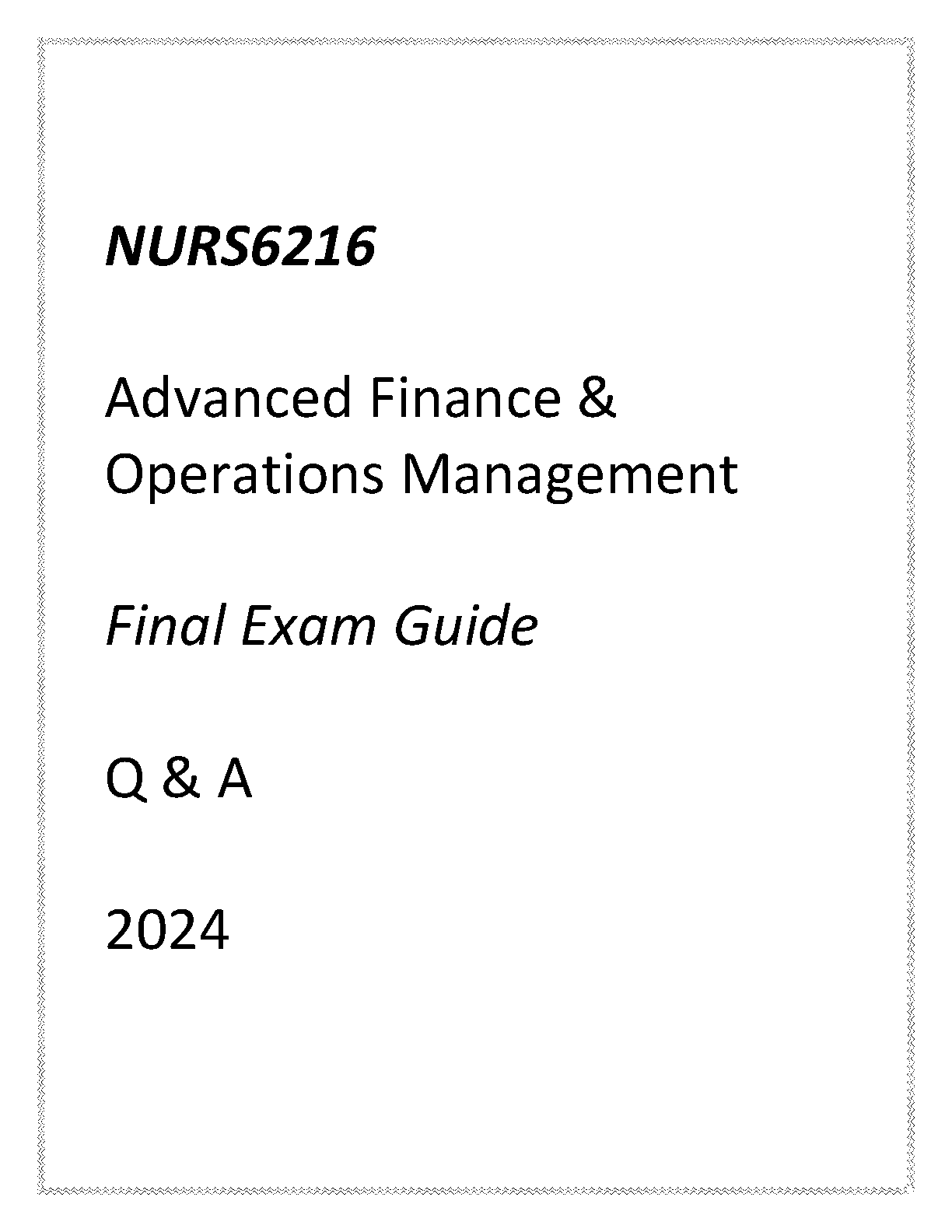 Ace your NURS6216 Advanced Finance & Operations Management final exam with this comprehensive guide. This guide is a perfect companion for the 2024 academic year. Includes detailed answers and explanations to ensure you fully grasp the concepts.