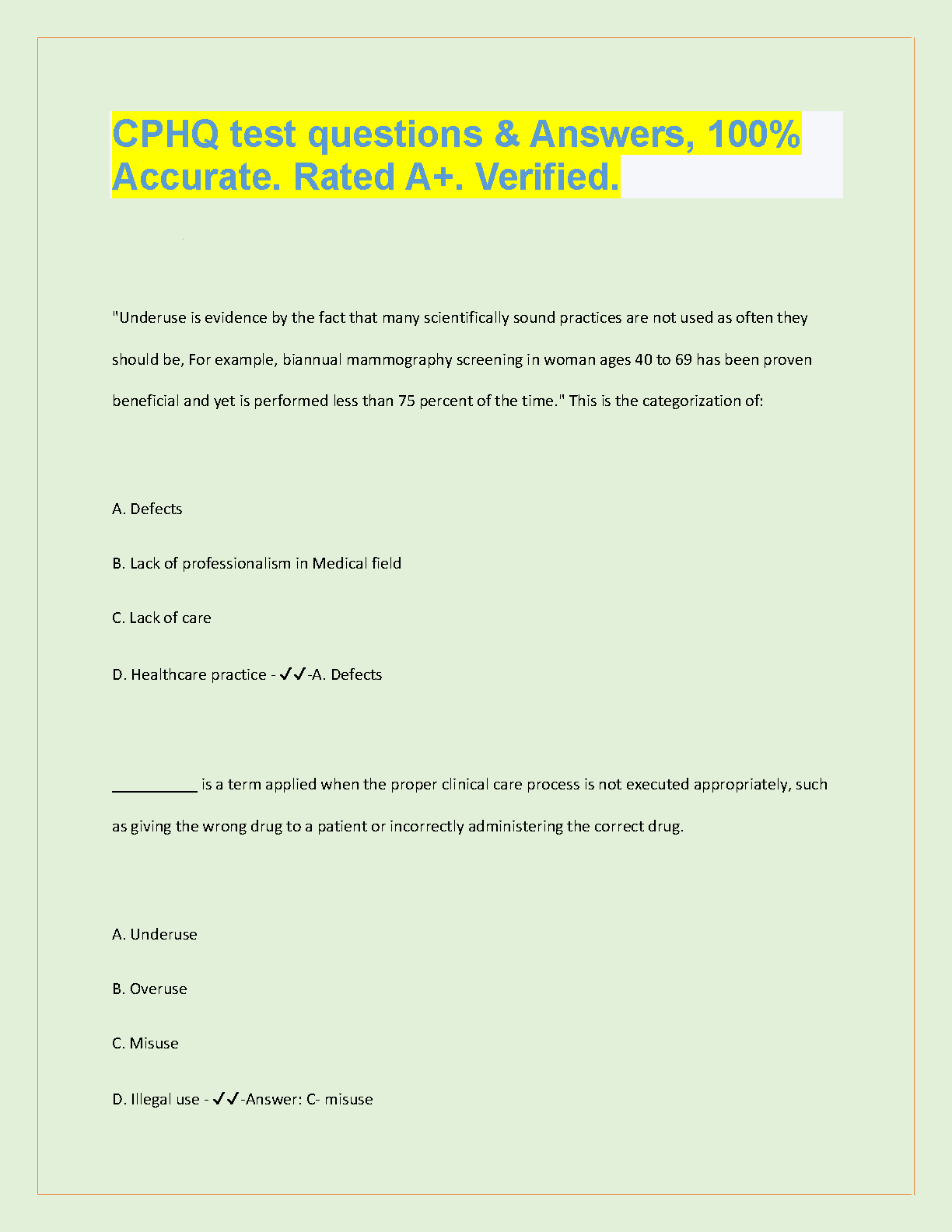 CPHQ Exam Practice Questions & Answers - Latest Edition - Pass Your Exam On The First Attempt