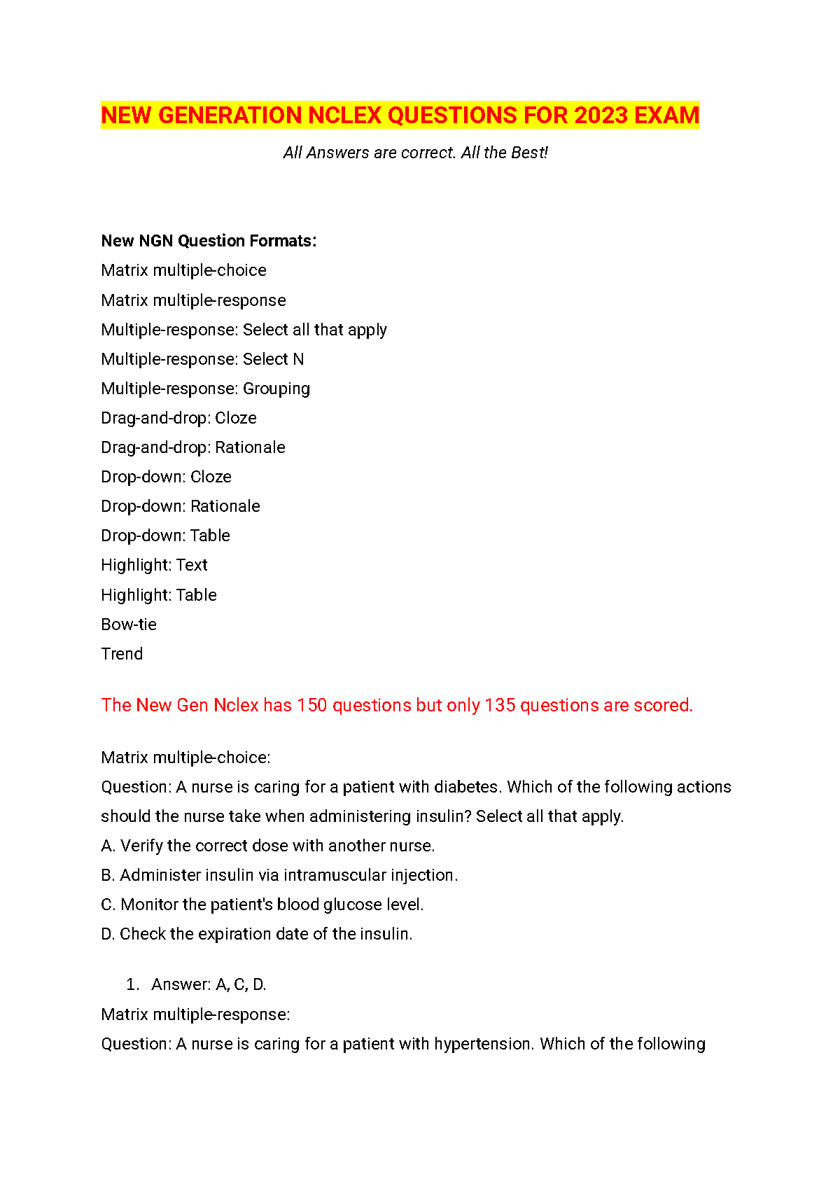 Pass your NCLEX with confidence! This comprehensive resource provides the latest new generation NCLEX exam questions for 2024/2025, covering all question formats and essential nursing concepts. Practice with real-world scenarios and learn from detailed explanations. Boost your score and avoid resits with this valuable study tool.