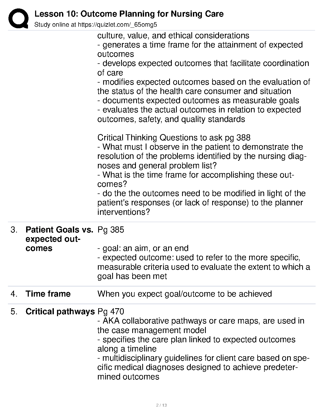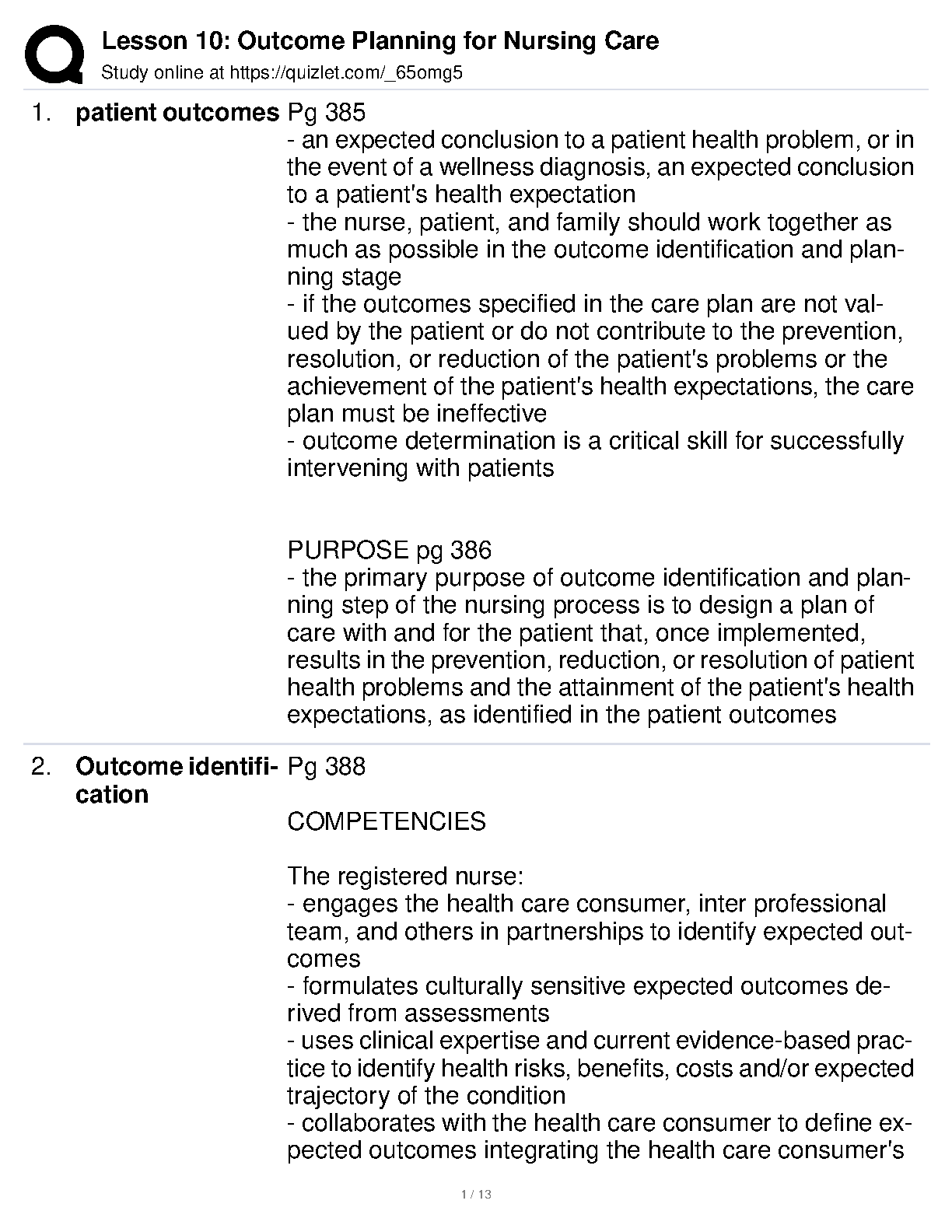 This comprehensive resource provides a detailed overview of outcome planning in nursing care. Explore the crucial role of patient outcomes in health care, understand the stages of outcome identification, and learn valuable competencies for effective outcome planning. Prepare for your nursing exams with this essential guide and achieve success on your first attempt.