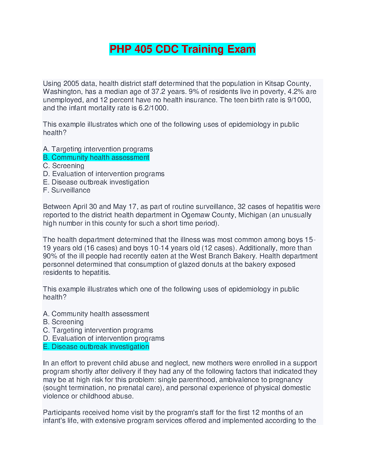 PHP 405 CDC Training Exam for 2024/2025: Ace Your Exam on the First Attempt and Avoid Resits