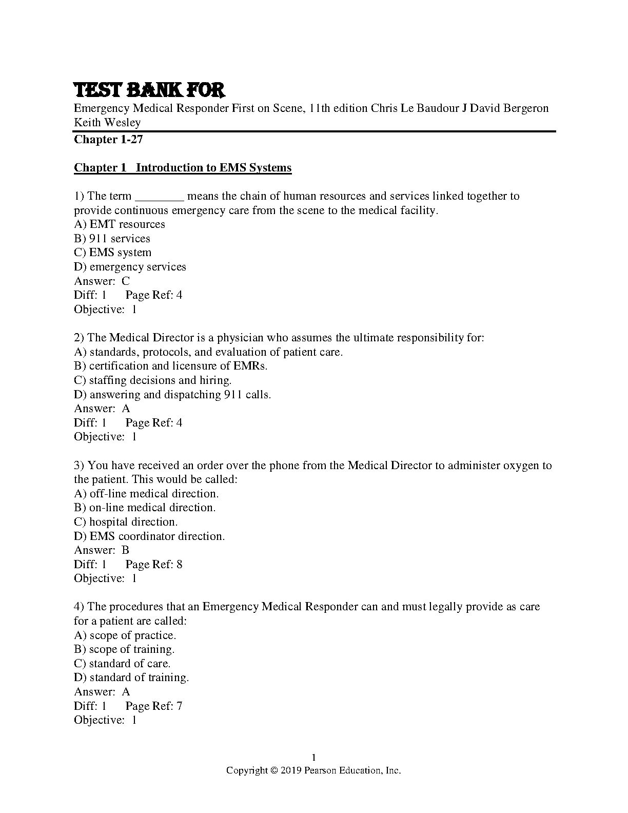 Emergency Medical Responder First on Scene, 11th Edition Test Bank by Chris Le Baudouir, J David Bergeron, Keith Wesley