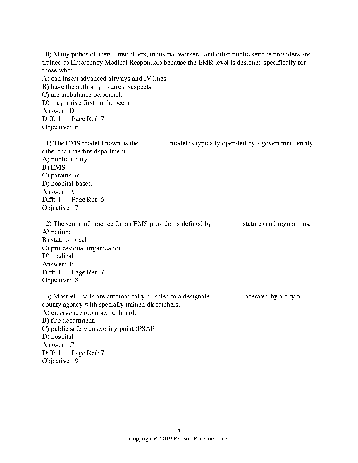 This is a comprehensive test bank for Emergency Medical Responder First on Scene, 11th Edition by Chris Le Baudouir, J David Bergeron, and Keith Wesley. This resource will help you prepare for your EMT exam and increase your chances of passing on your first attempt, avoiding costly and time-consuming resits.