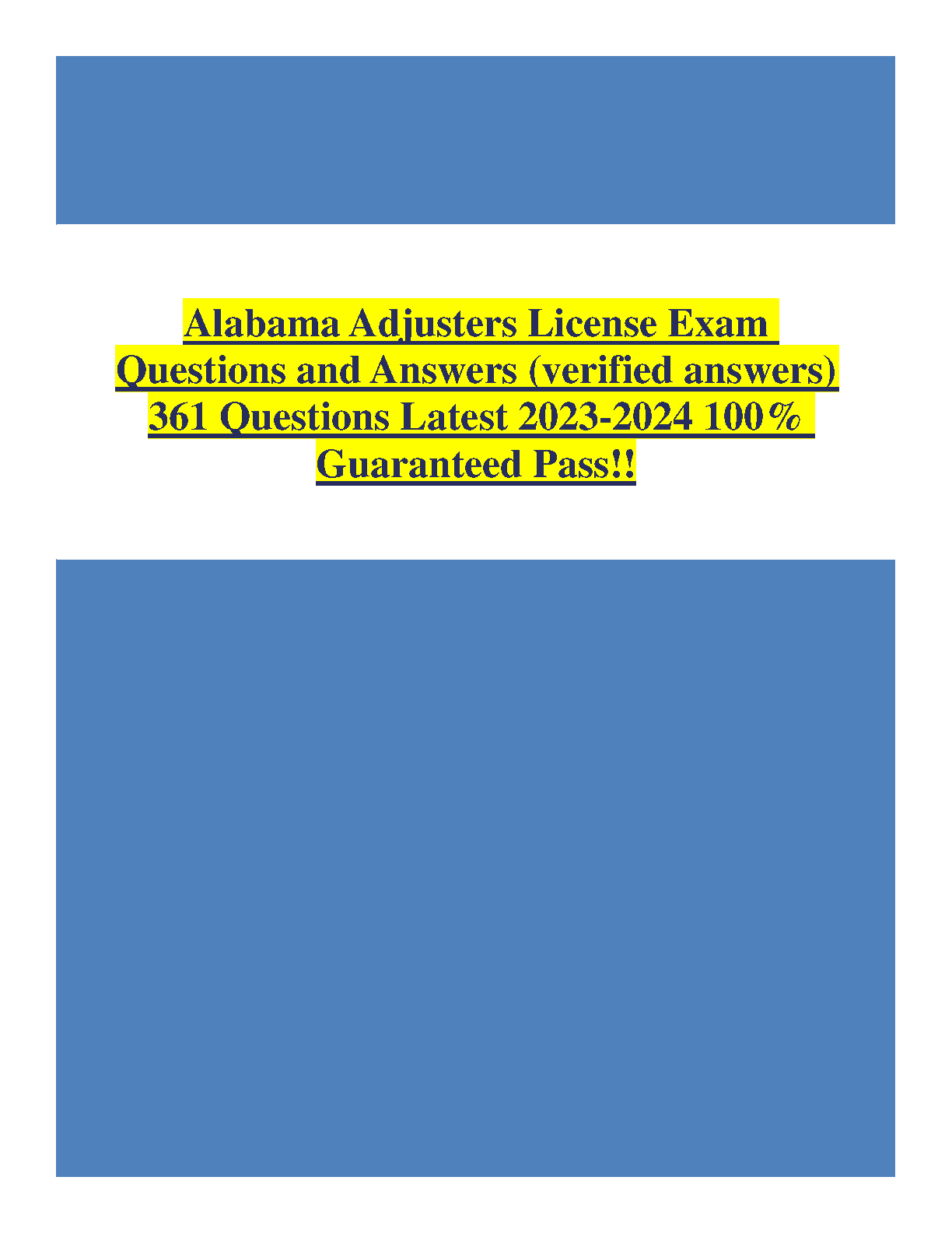Alabama Adjusters License Exam Questions and Answers (Verified) 2023-2024 Edition