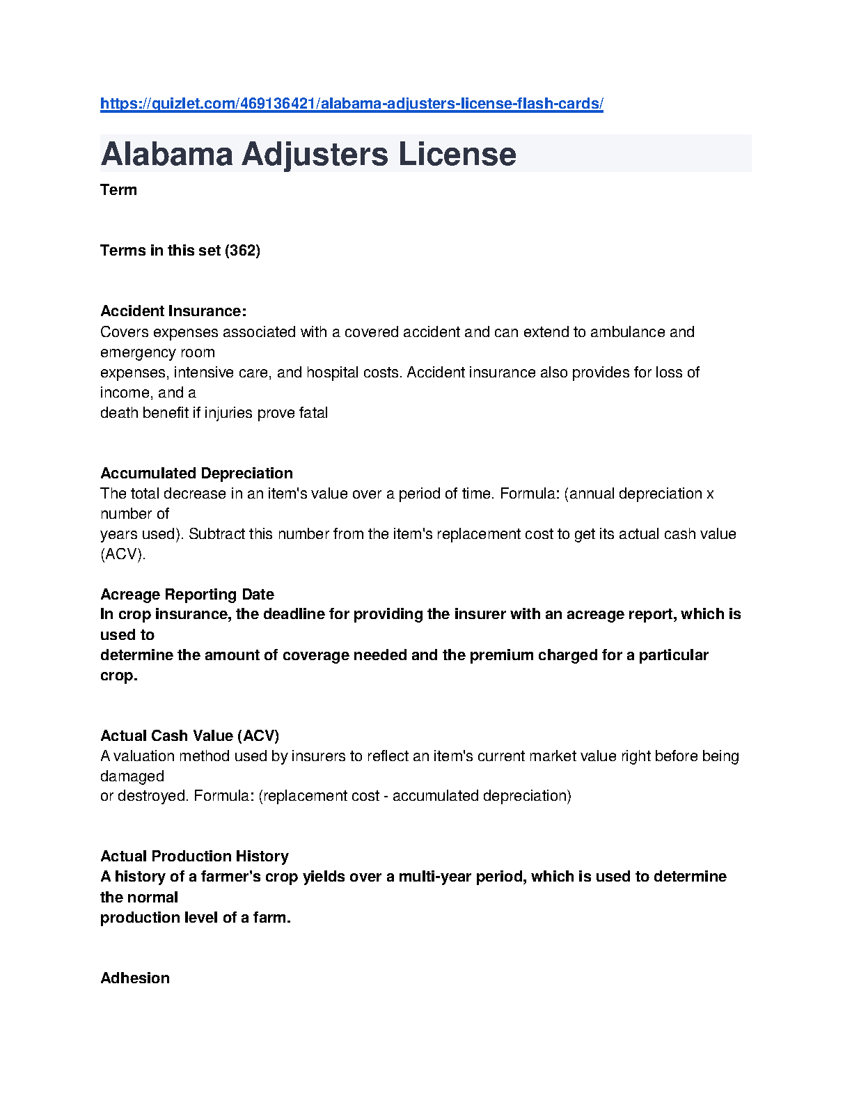 Ace your Alabama Adjusters License Exam with our comprehensive study guide featuring 361 verified questions and answers. Our study materials are updated for the 2023-2024 exam cycle, ensuring you have the most relevant and up-to-date content for your success.