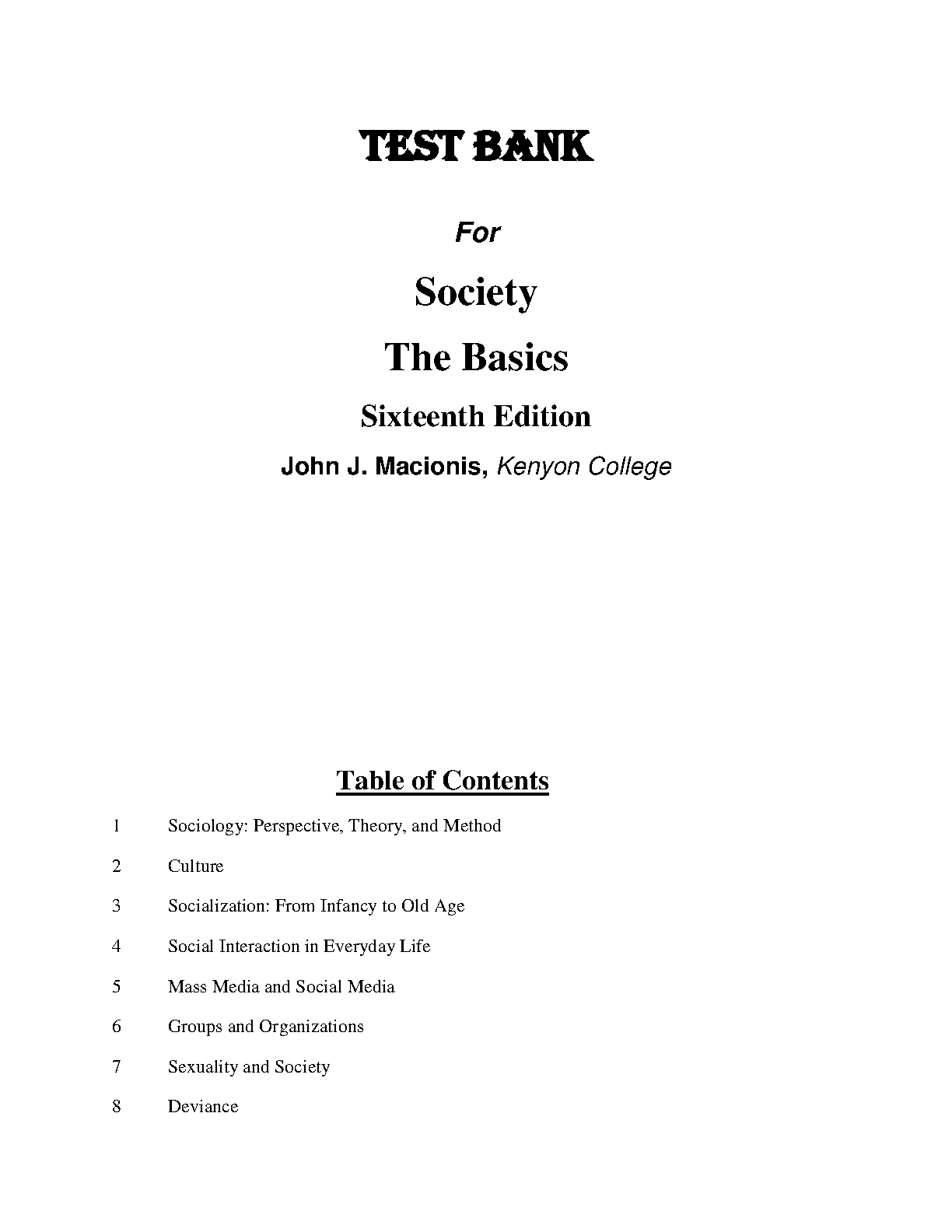 Test Bank for Society: The Basics 16th Edition by John J. Macionis, Kenyon College