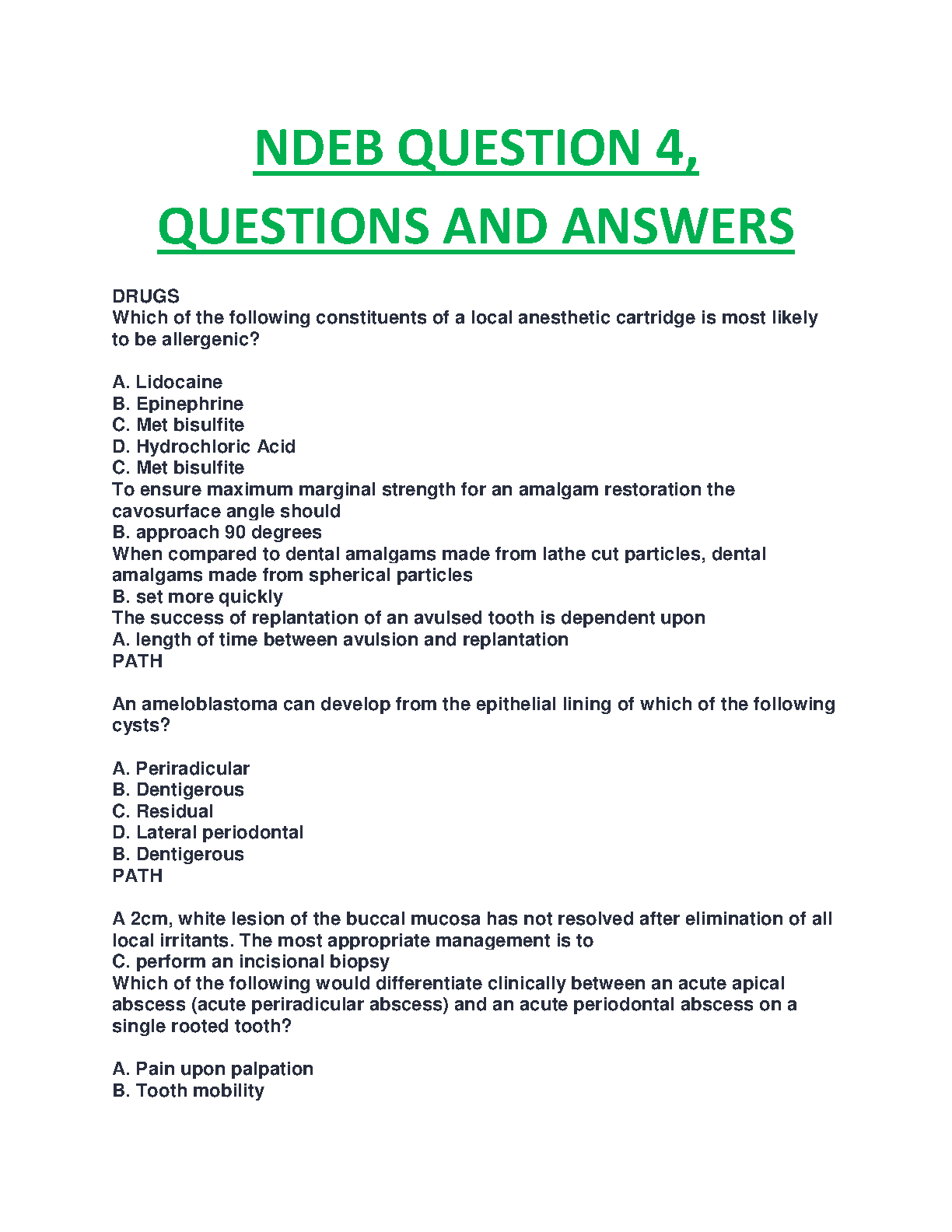 This comprehensive resource provides you with a collection of NDEB questions and answers, covering various aspects of dentistry. Enhance your exam preparation and increase your chances of success on your first attempt.