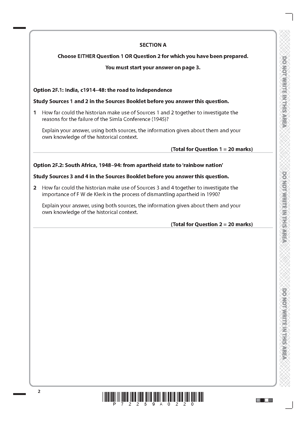 Edexcel A Level History Question Paper Option 2f 12 June 2023 + Mark Scheme by Edexcel