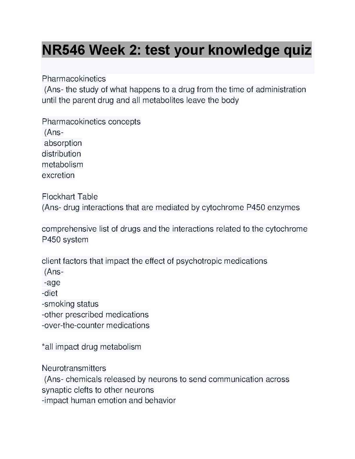 NR546 Week 2: Test Your Knowledge Quiz - Pharmacology for Nurses - Ace Your Exams First Try!