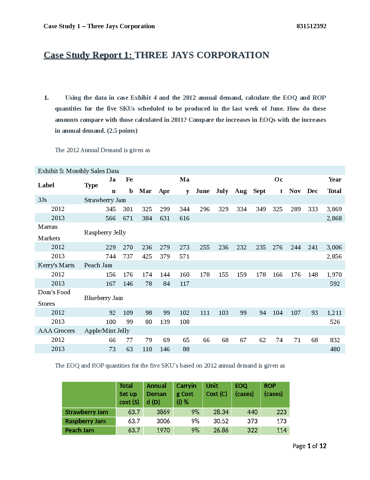This comprehensive case study report delves into the operations of Three Jays Corporation, providing valuable insights and practical solutions for students seeking to excel in their business studies. Unlock the secrets to achieving optimal inventory management, demand forecasting, and supply chain efficiency. Prepare for your upcoming exams with confidence and achieve a deeper understanding of real-world business challenges.