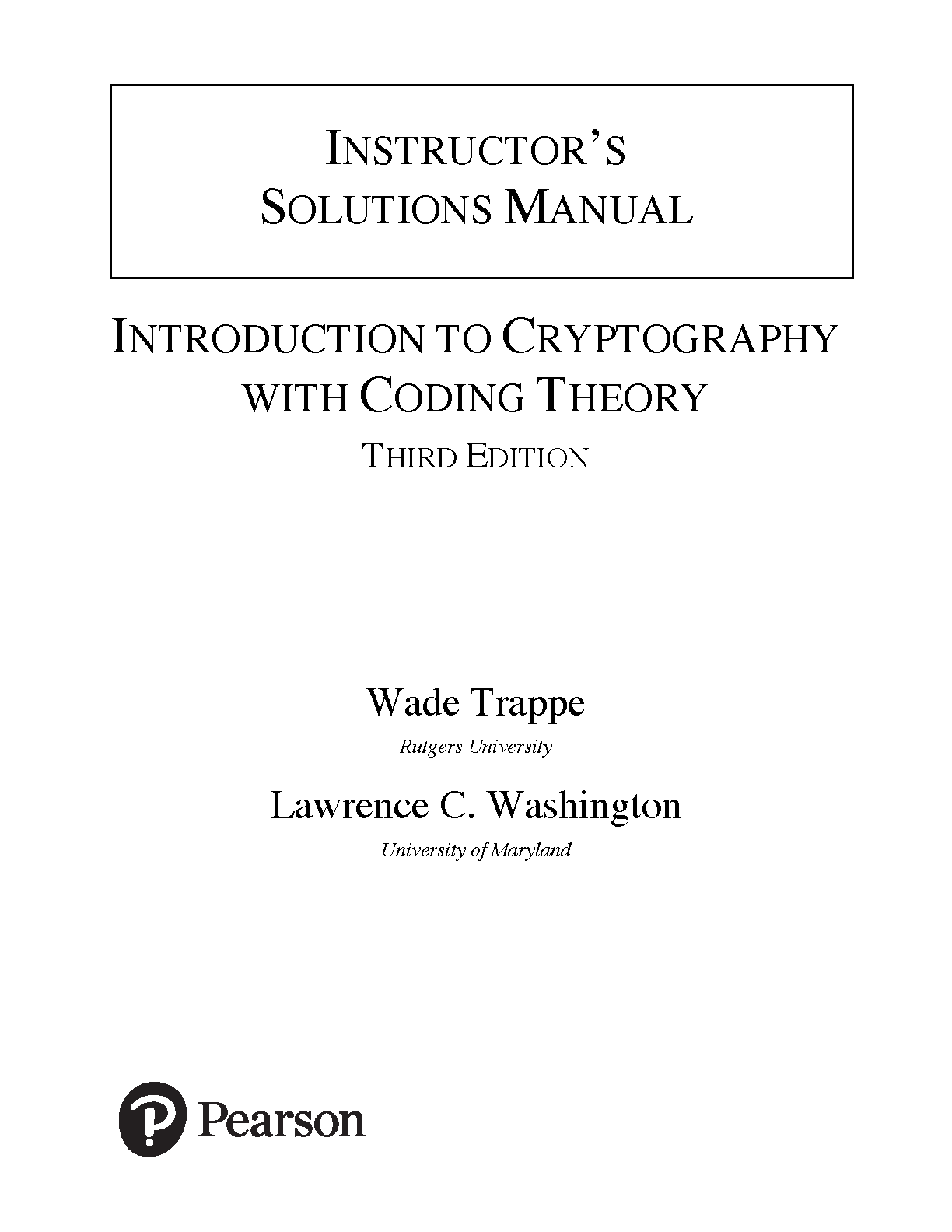 Instructor's Solutions Manual to Introduction to Cryptography with Coding Theory, 3rd Edition by Wade Trappe and Lawrence C. Washington