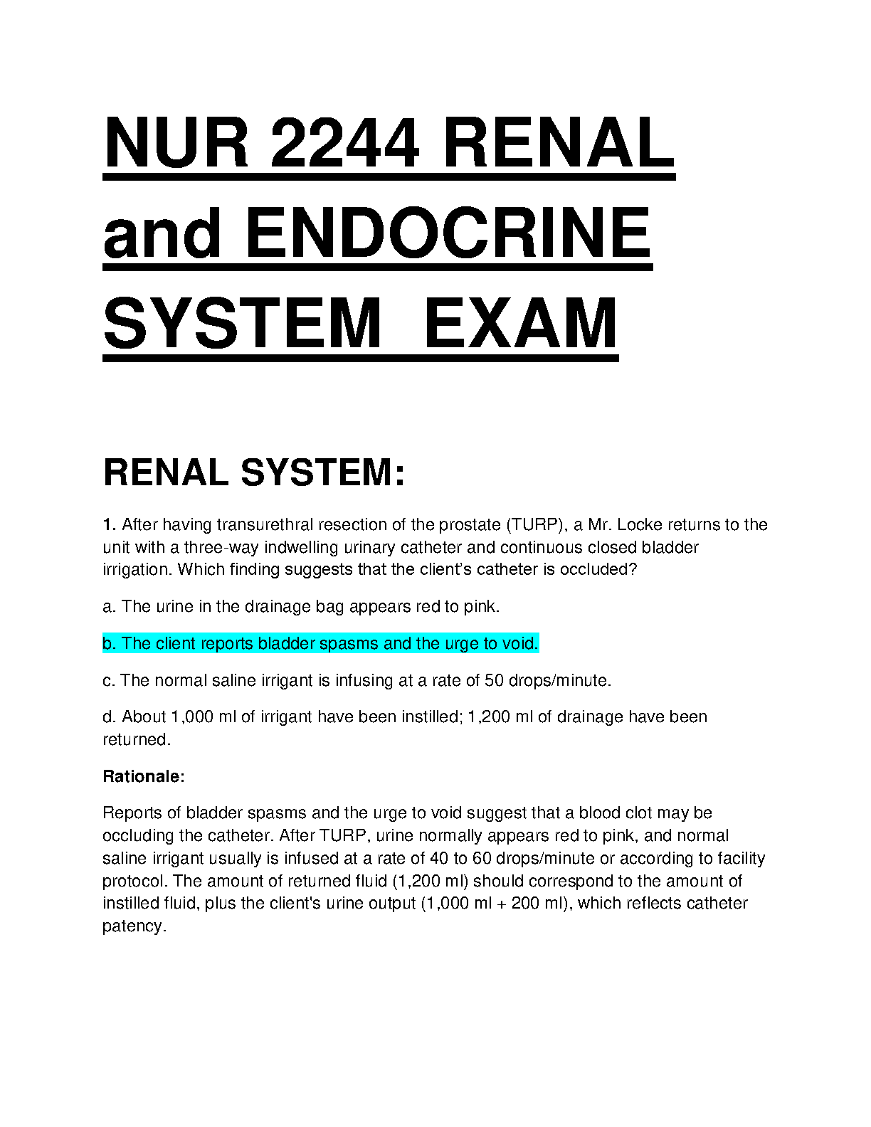 NUR 2244 Renal and Endocrine System Exam: Study Guide for Success in 2024/2025