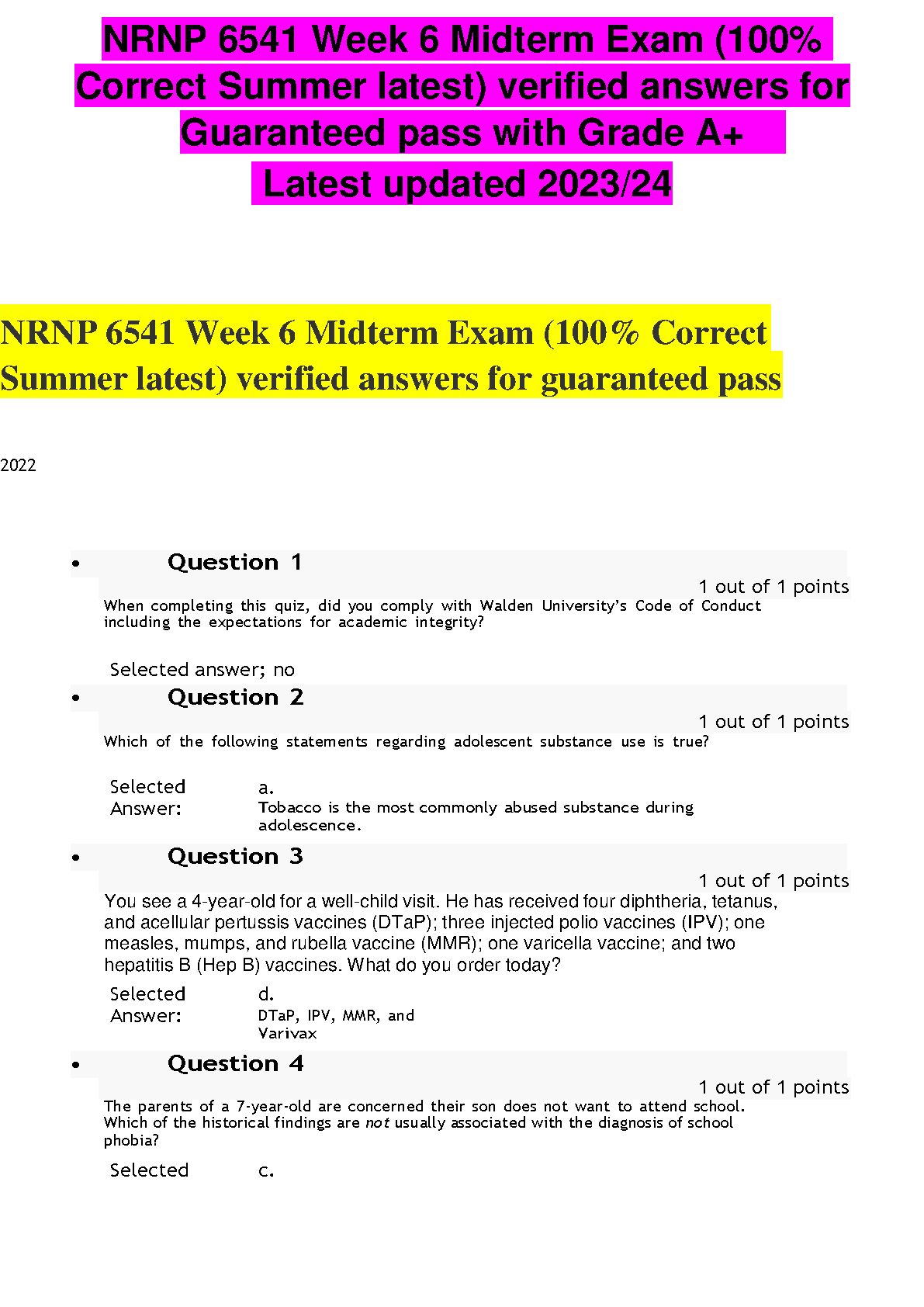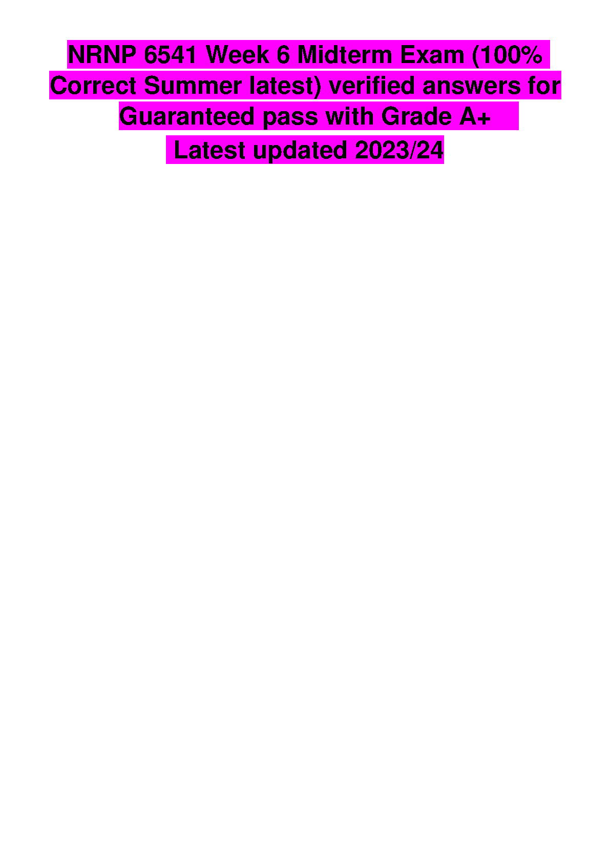 Ace your NRNP 6541 Midterm Exam with these latest verified answers. Get a guaranteed A+ and avoid resits. Download now and boost your exam confidence!