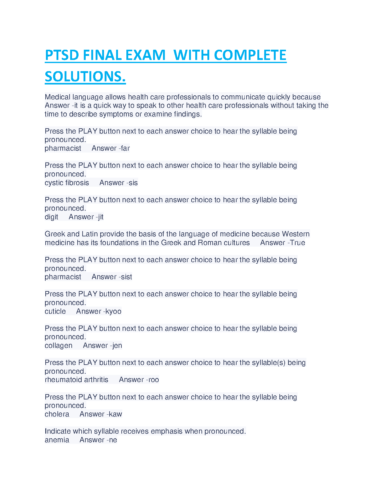 Ace your PTSD final exam with this comprehensive study guide featuring complete solutions for all questions. Master the concepts and terminology for a confident and successful exam experience.