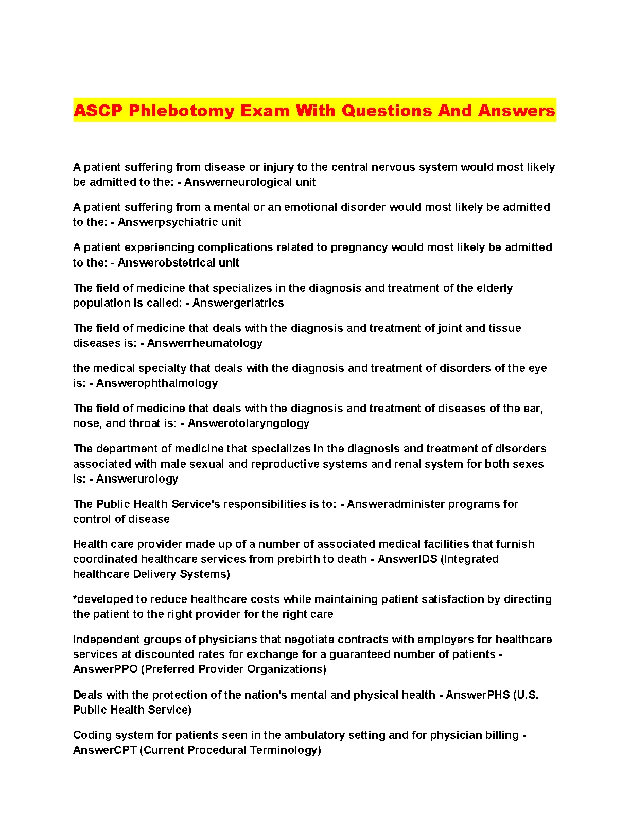 ASCP Phlebotomy Exam With Questions And Answers 2023. DOWNLOAD on www.hackedexams.com INSTANTLY.