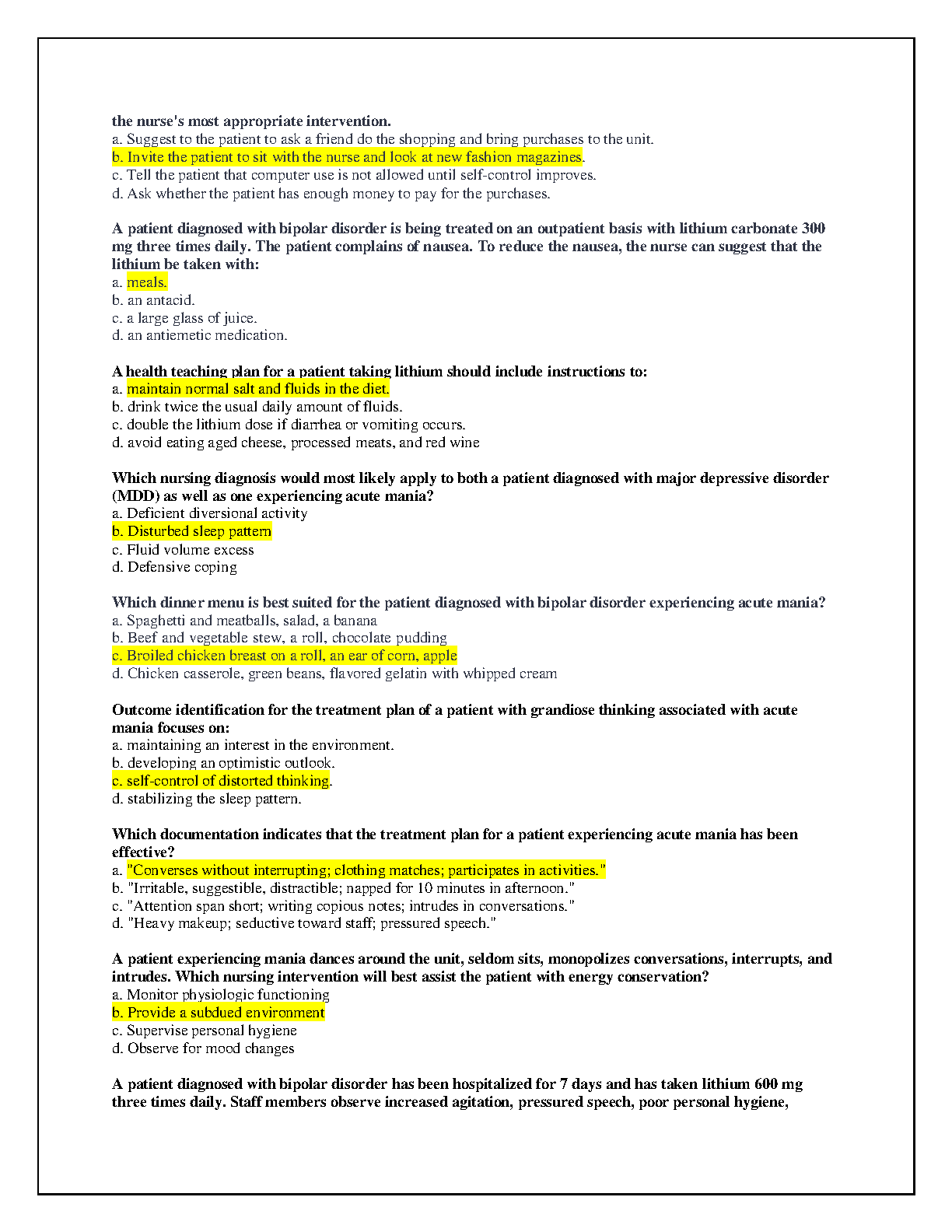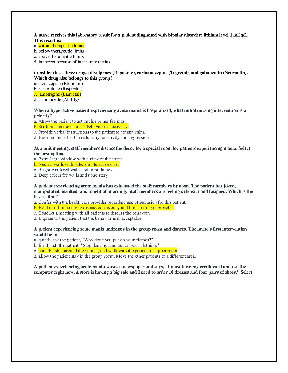 Mental Health Exam Questions and Answers: 2023/2024 Edition