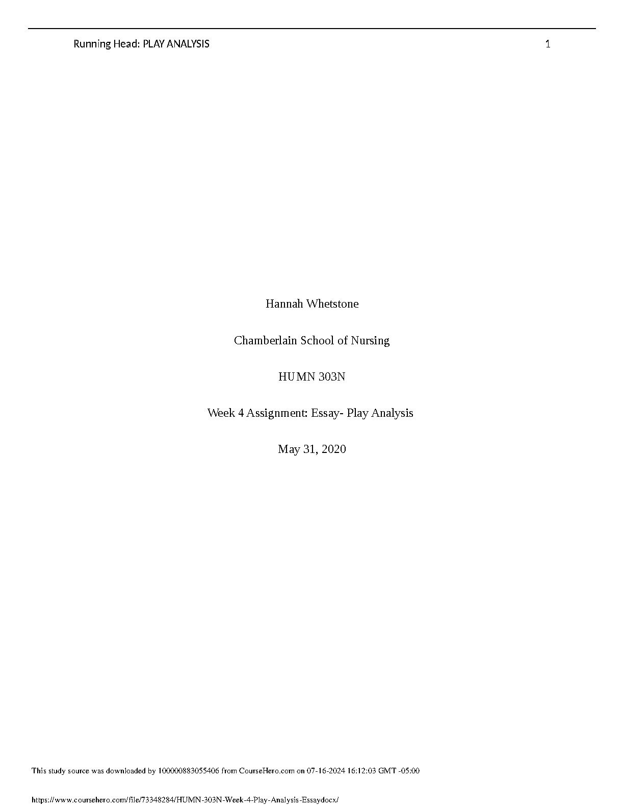 HUM 303N Week 4 Assignment Essay - Play Analysis is a helpful study guide that covers the essential aspects of play analysis. It provides clear explanations, insightful examples, and practical tips to aid students in understanding the key elements of plays. This resource is a valuable tool for students who are looking to excel in their HUM 303N course and ace their exams.