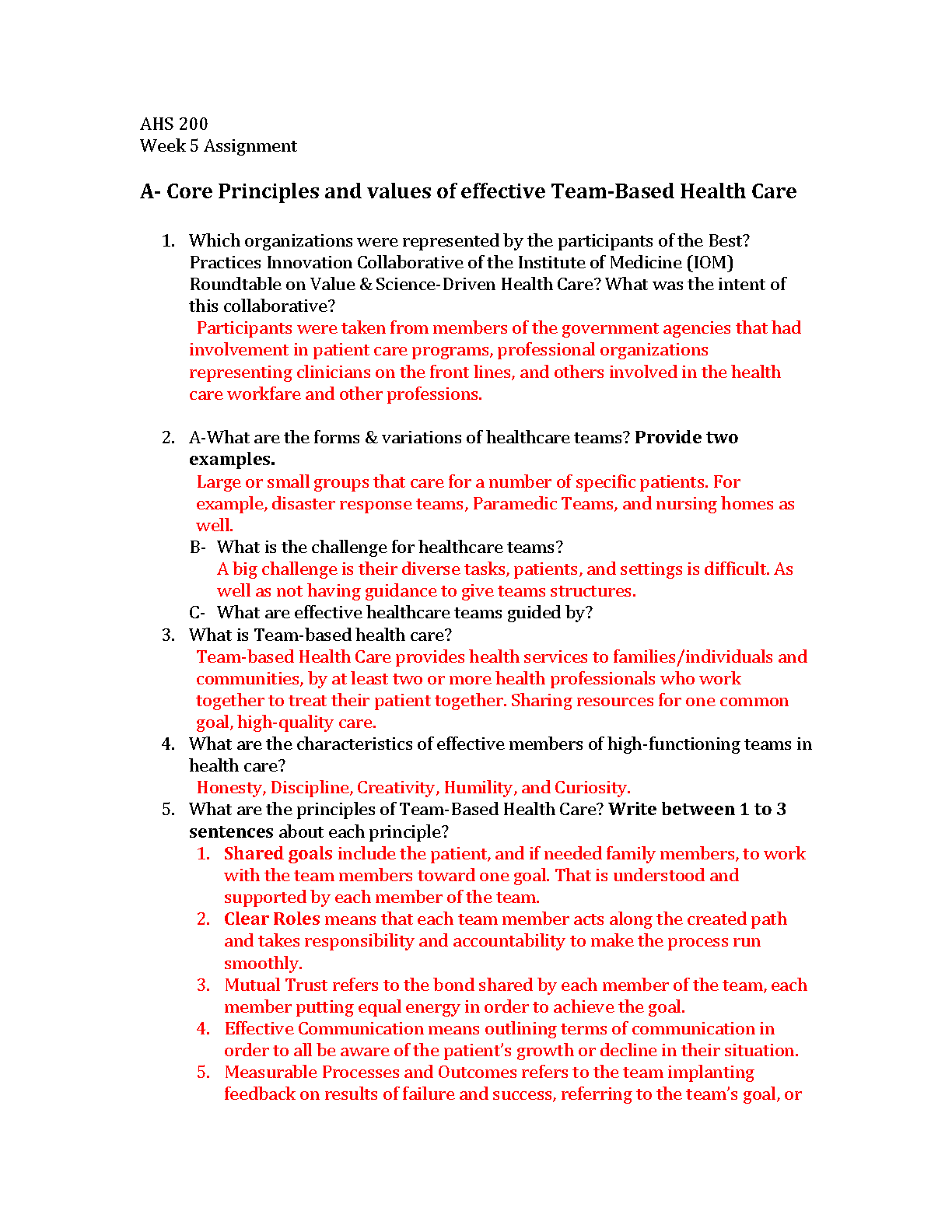 AHS 200: Core Principles and Values of Effective Team-Based Health Care - A Comprehensive Guide for Success in 2024/2025