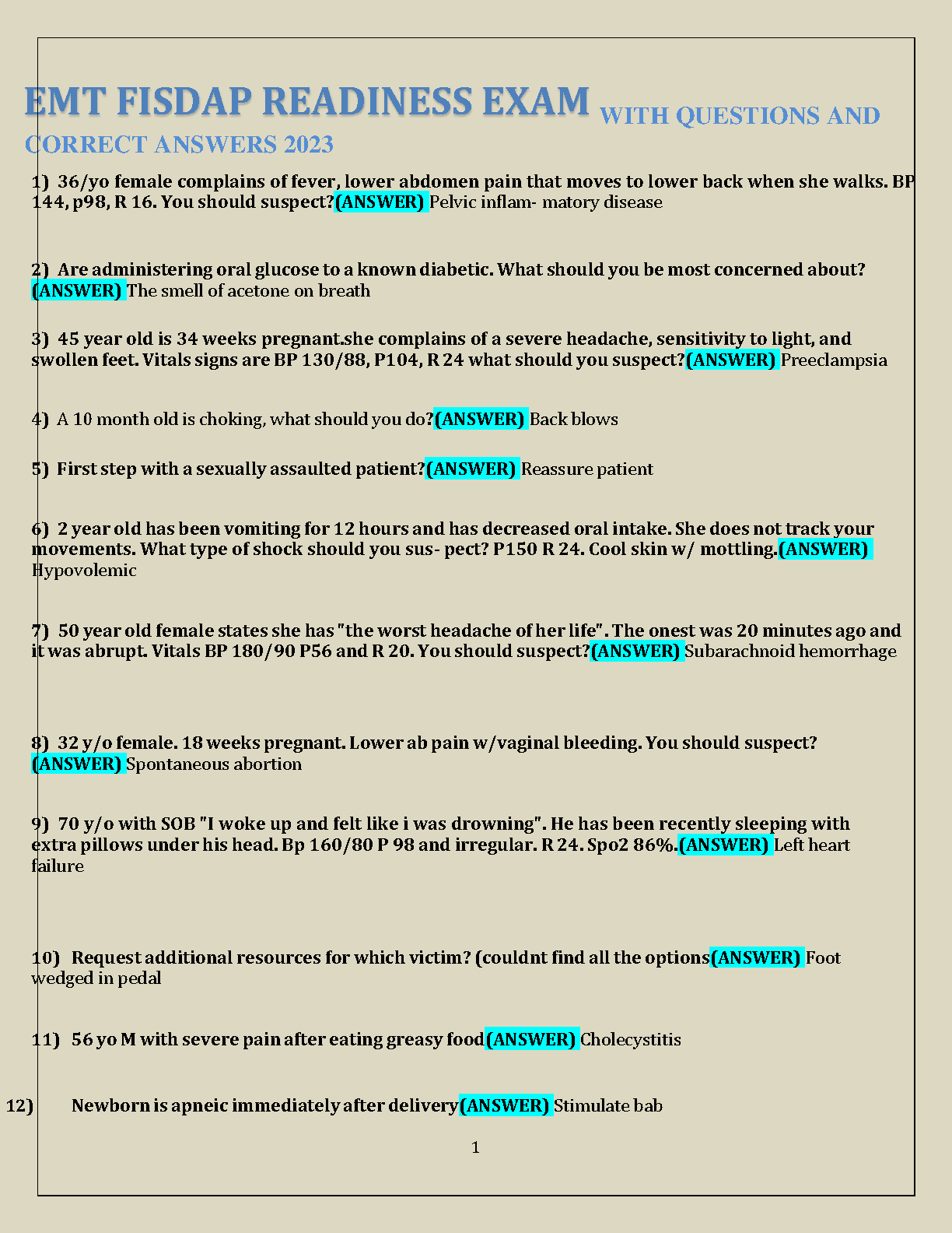 EMT FISDAP Readiness Exam With Questions and Correct Answers 2023