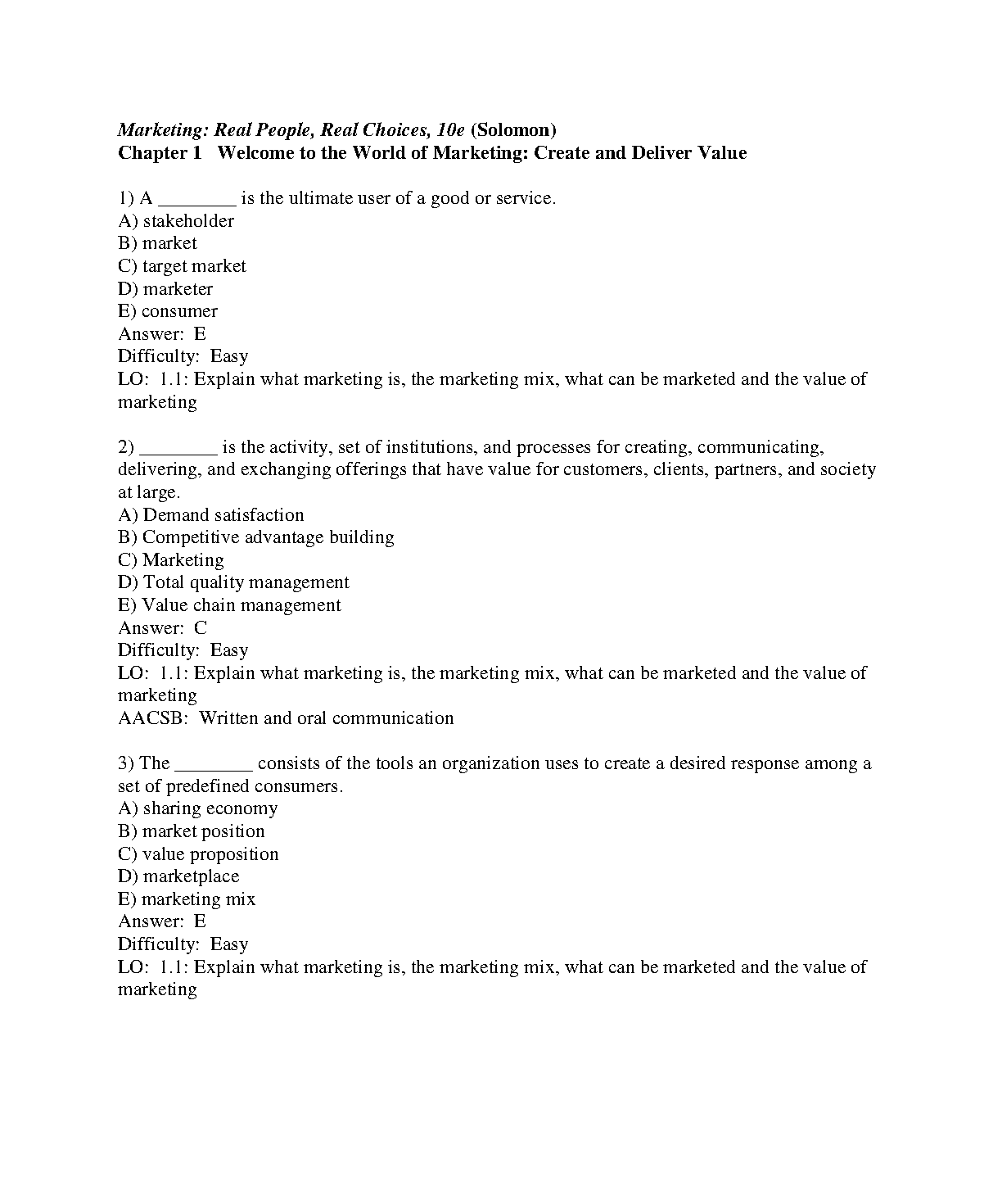 Marketing: Real People, Real Choices 10th Edition Test Bank by Michael R. Solomon, Greg W. Marshall, Elnora W. Stuart