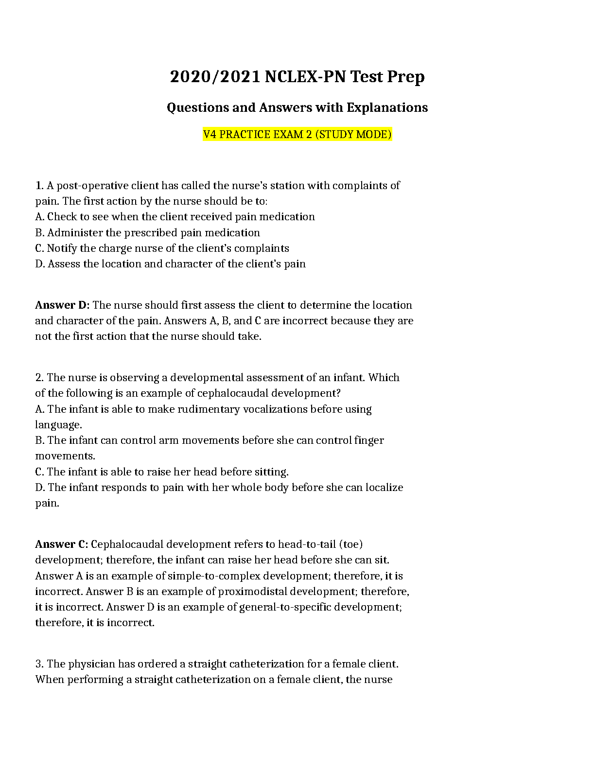 2020/2021 NCLEX-PN Test Prep: Questions and Answers with Explanations V4 Practice Exam 2 (Study Mode)