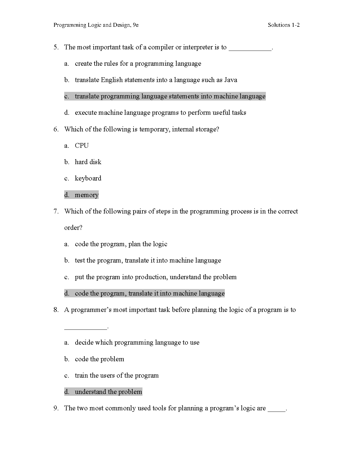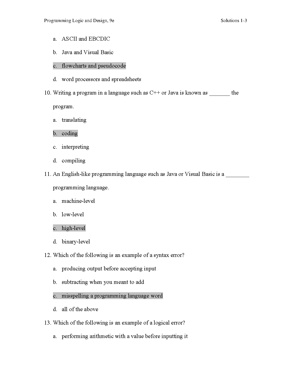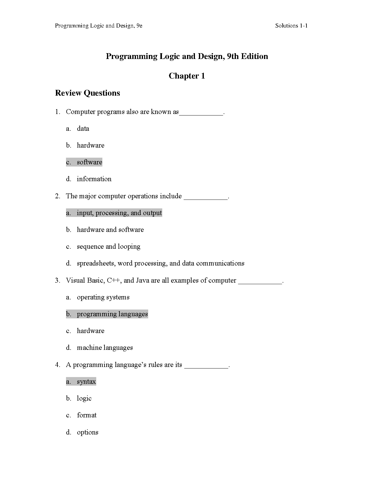 Programming Logic and Design, 9th Edition by Behrouz A. Forouzan and Richard F. Gilberg: Review Questions and Solutions