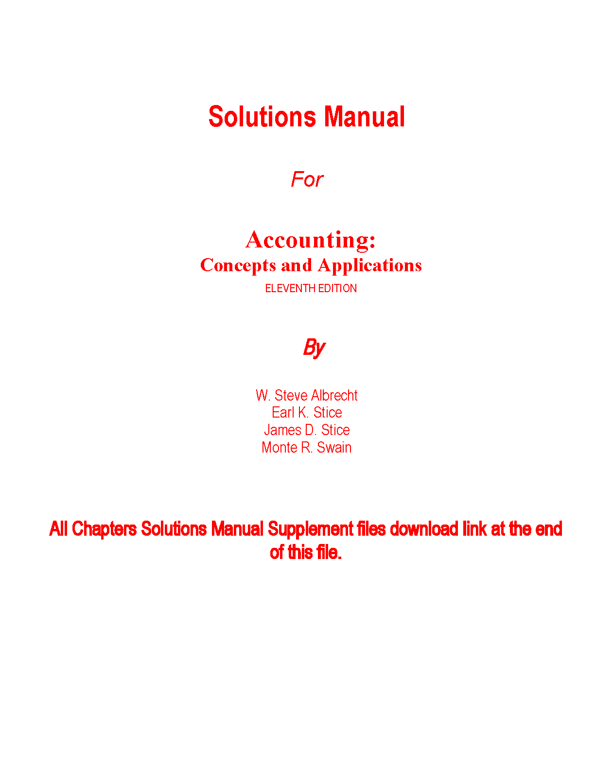 Accounting: Concepts and Applications 11th Edition Solutions Manual by W. Steve Albrecht, Earl K. Stice, James D. Stice, Monte R. Swain