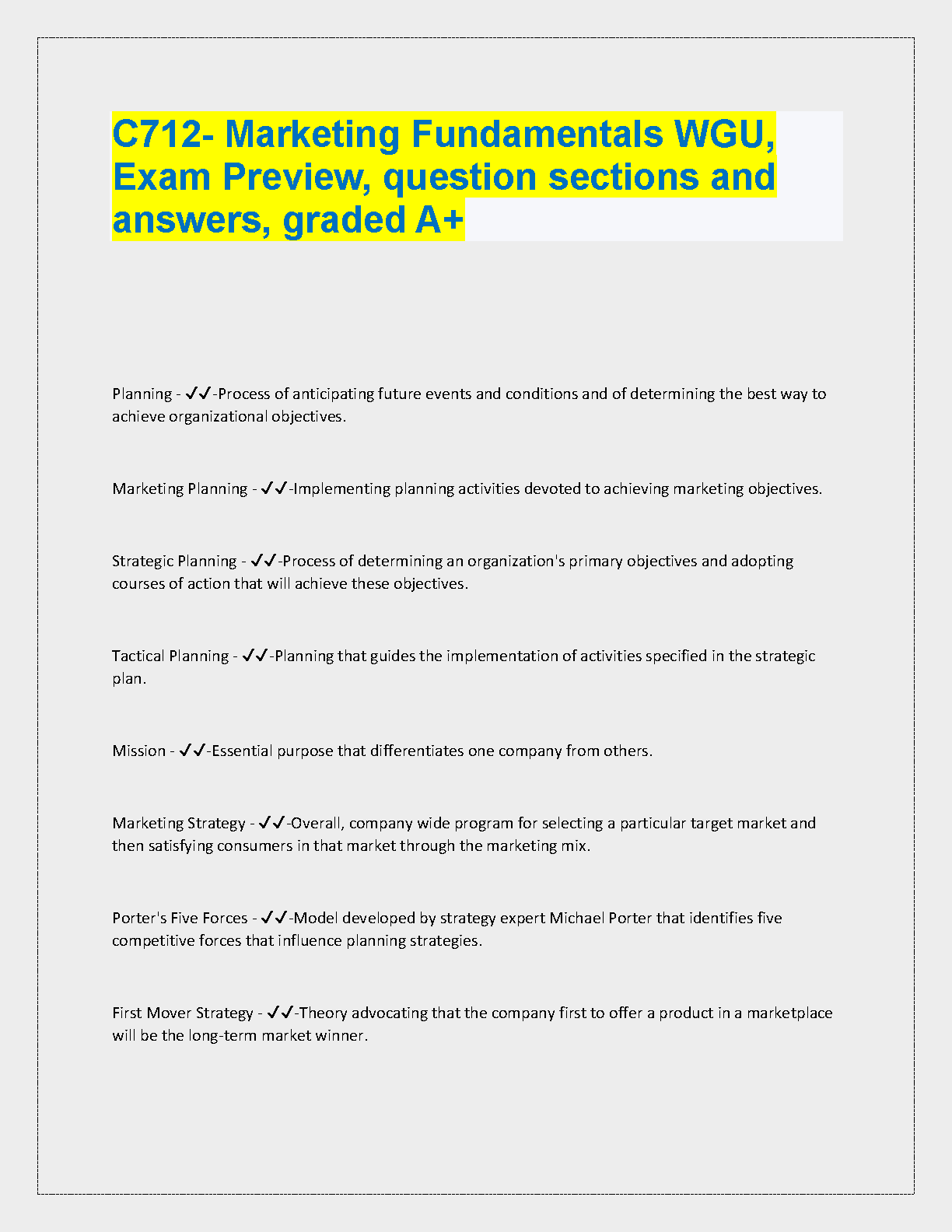 Pass your WGU C712 Marketing Fundamentals exam on the first try with this comprehensive exam review guide. This resource features actual exam questions, answers, and a detailed analysis of key concepts.
