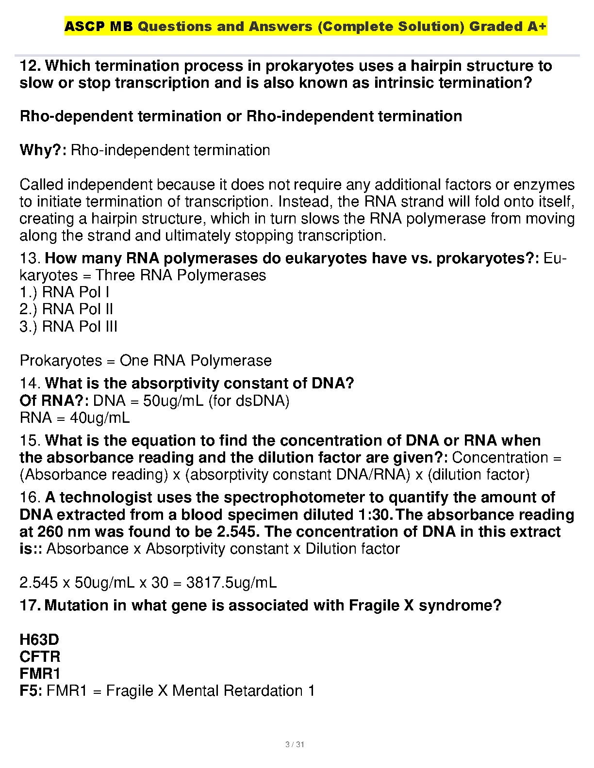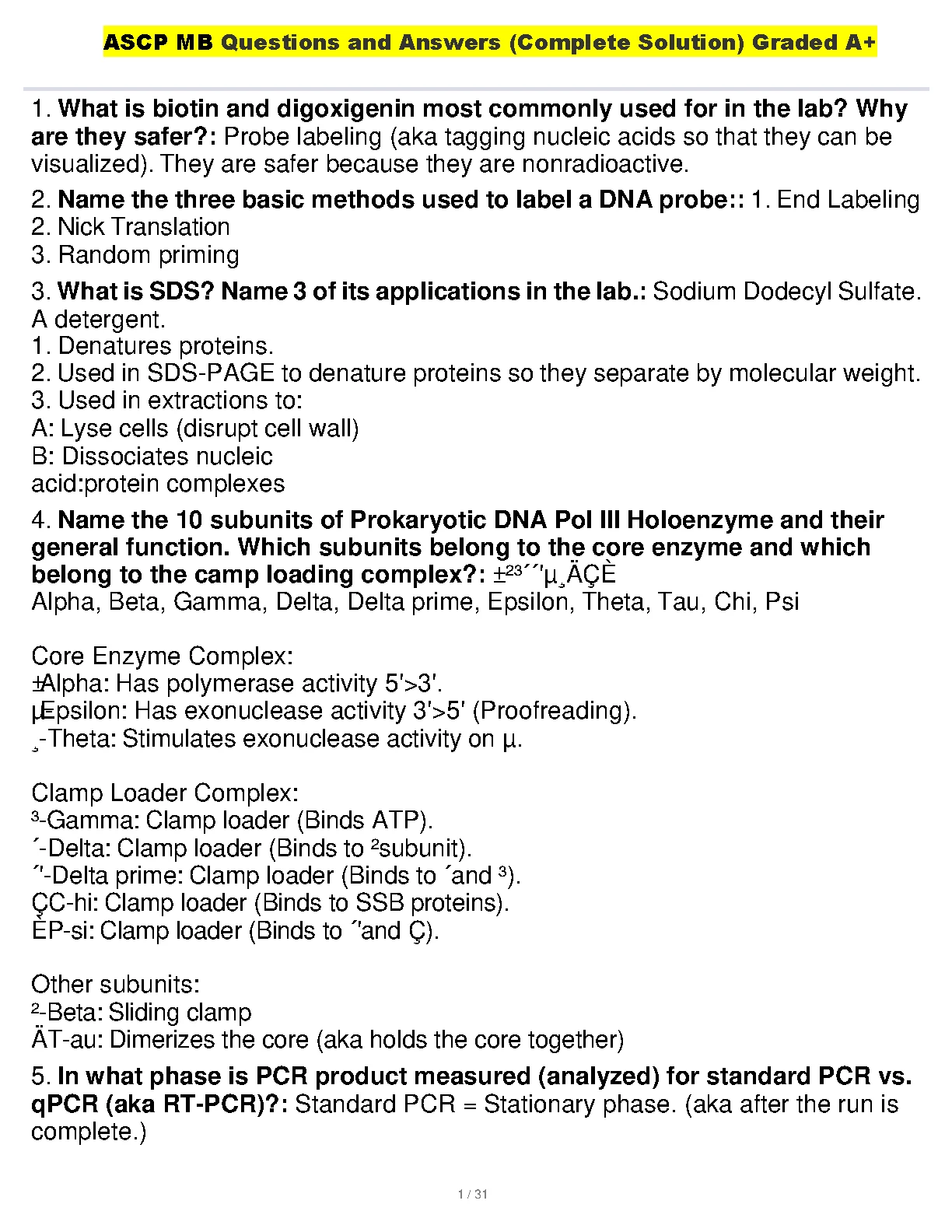 ASCP MB Questions and Answers (Complete Solution) Graded A+ 2023. DOWNLOAD on www.hackedexams.com INSTANTLY.