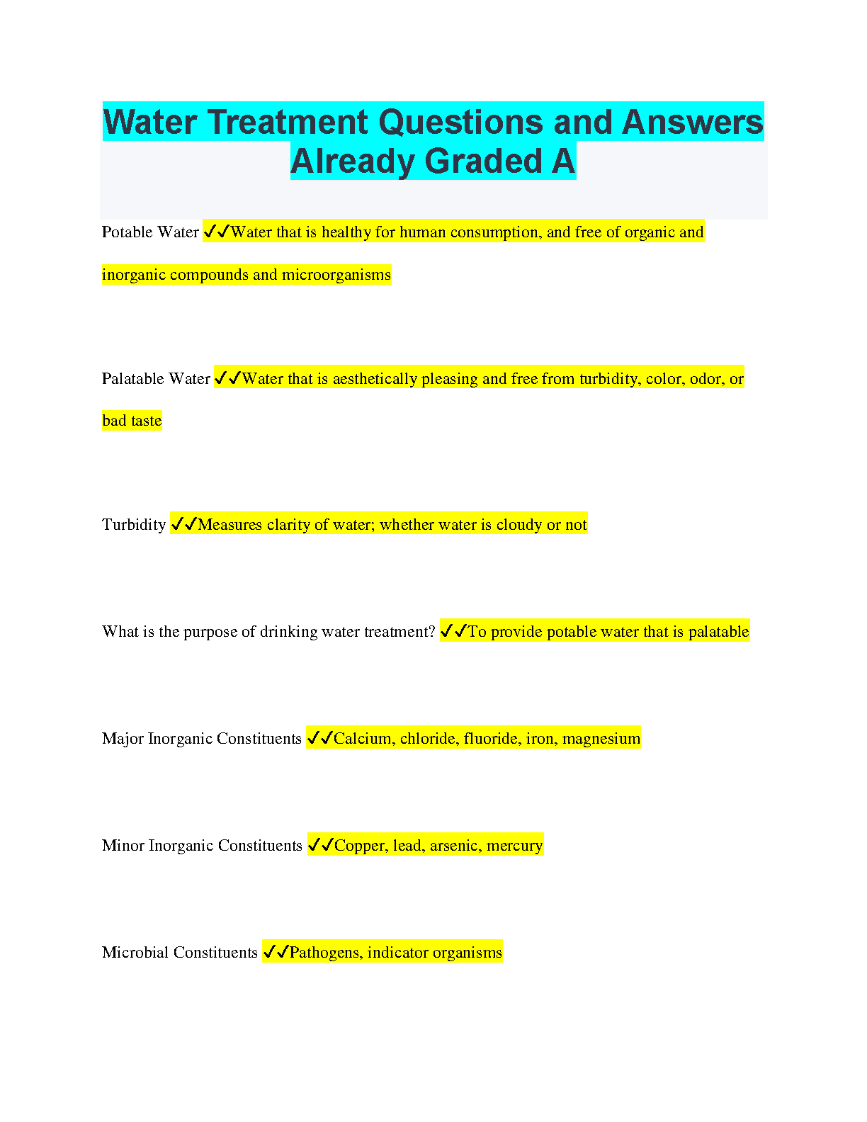Water Treatment Questions and Answers Already Graded A