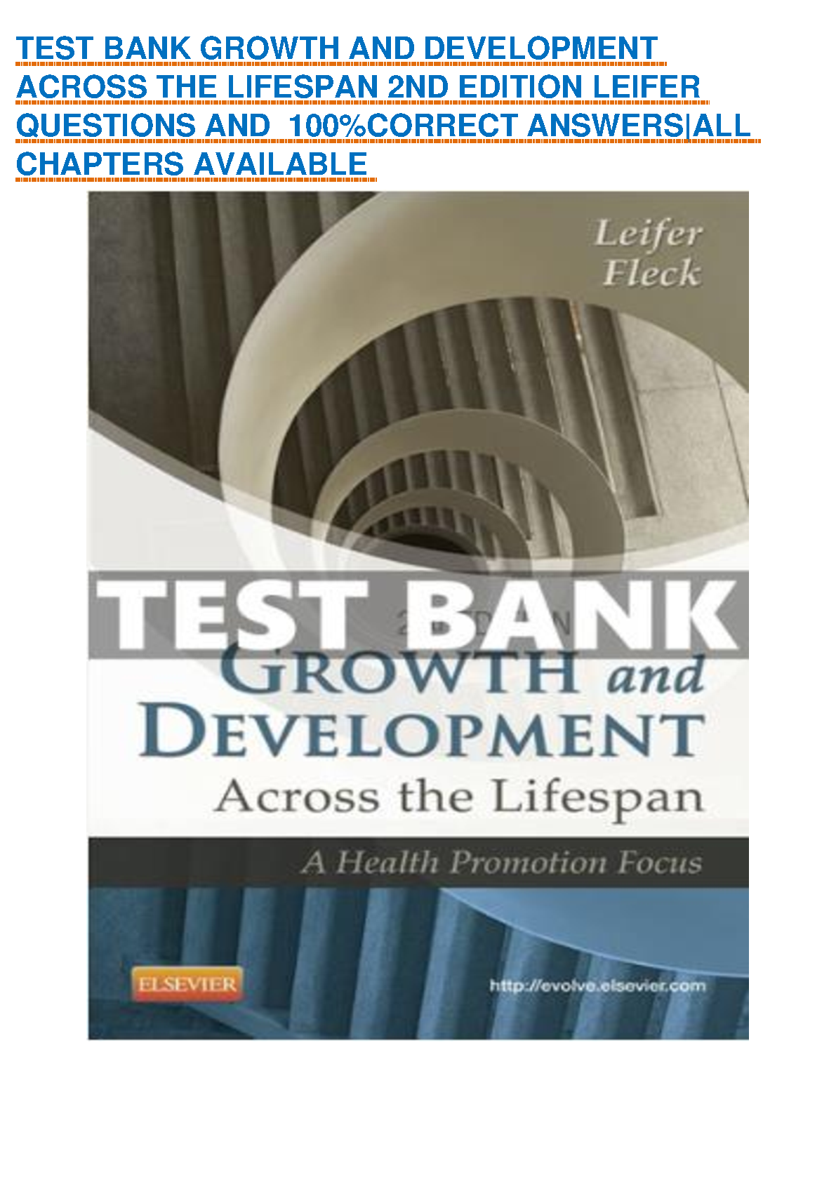 Get ready to ace your exams with this comprehensive test bank solution manual for Growth and Development Across the Lifespan, 2nd Edition by Leifer and Fleck. This resource offers detailed answers and explanations to all the questions in the textbook, making it the perfect study companion for students.