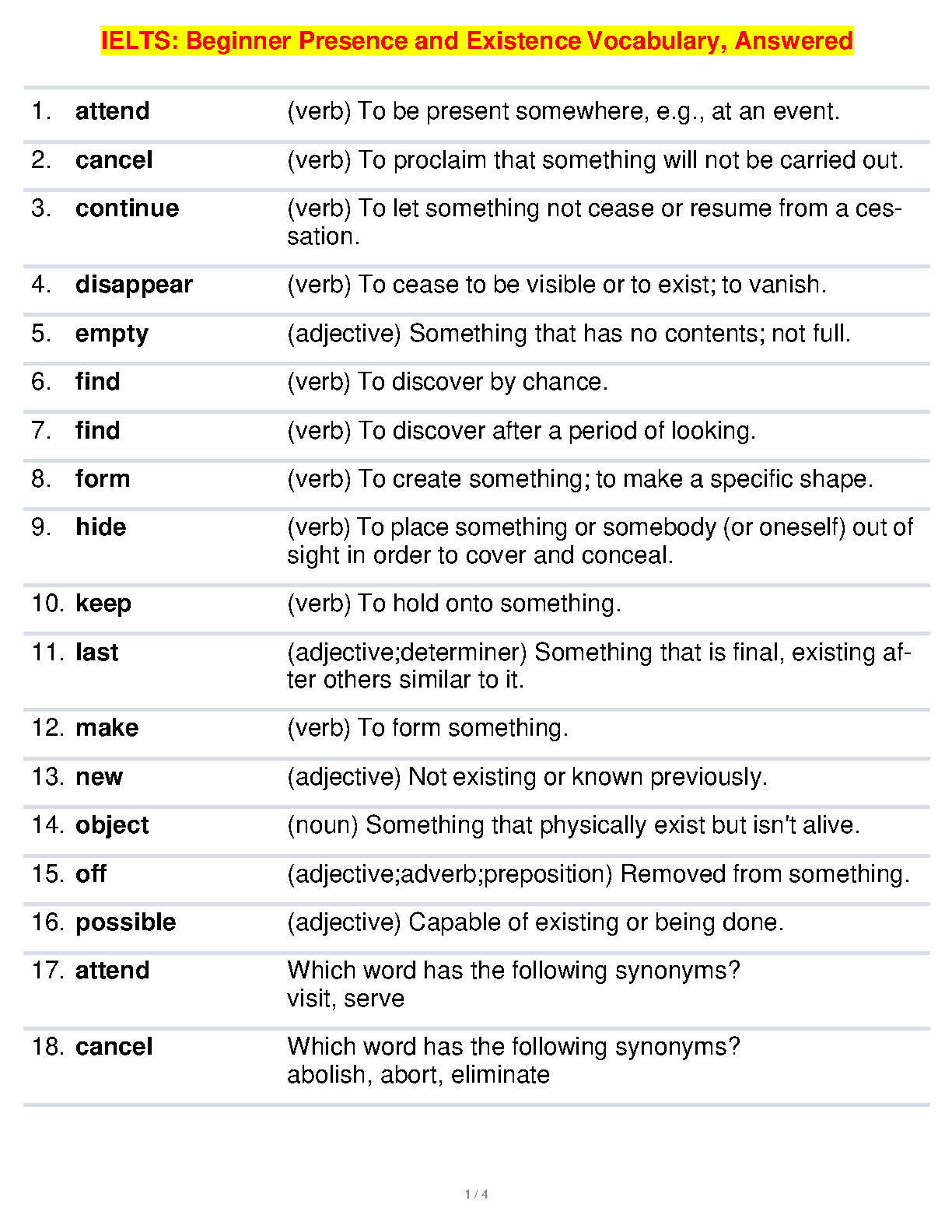 IELTS Beginner Presence and Existence Vocabulary - Answered