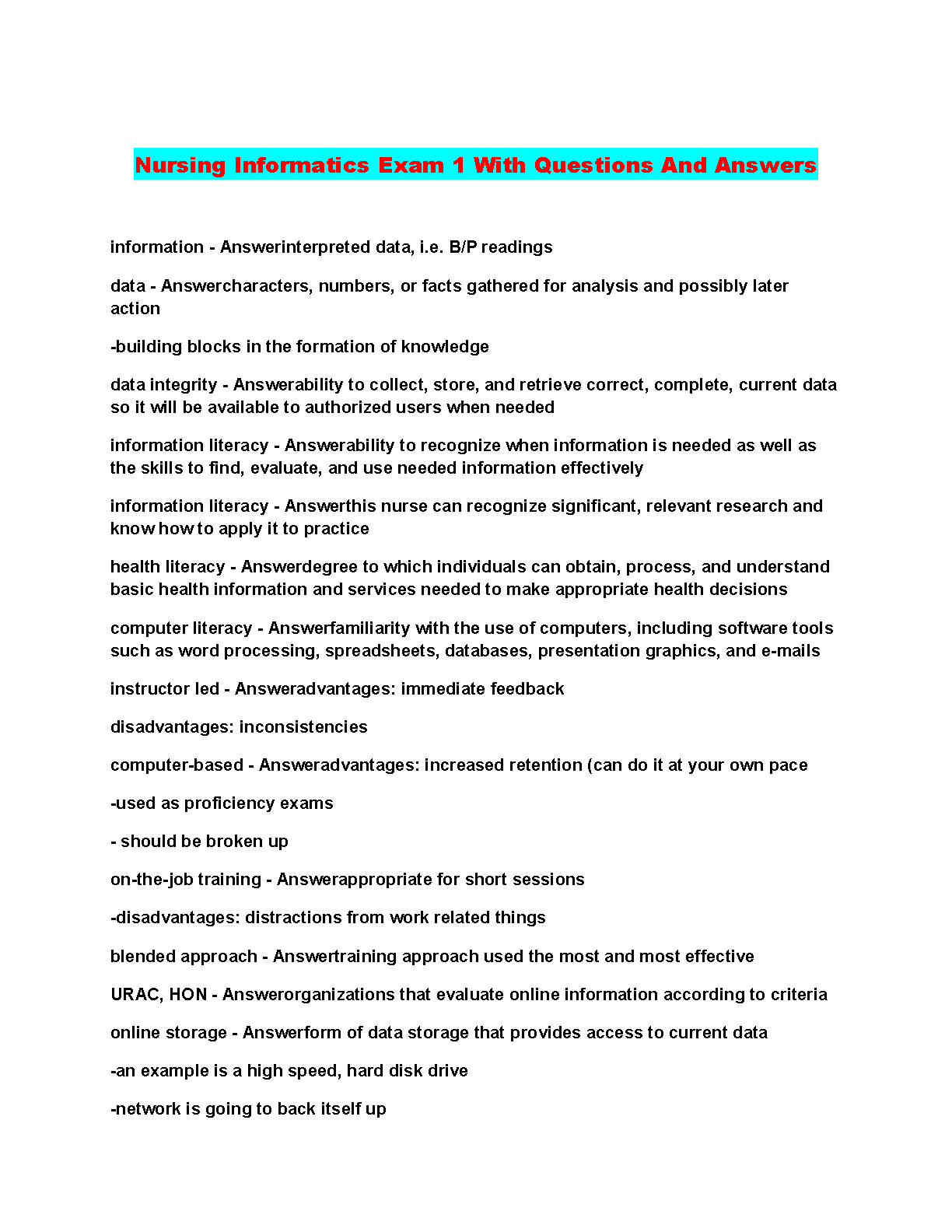 Nursing Informatics Exam 1 With Questions and Answers: A Comprehensive Guide to Success