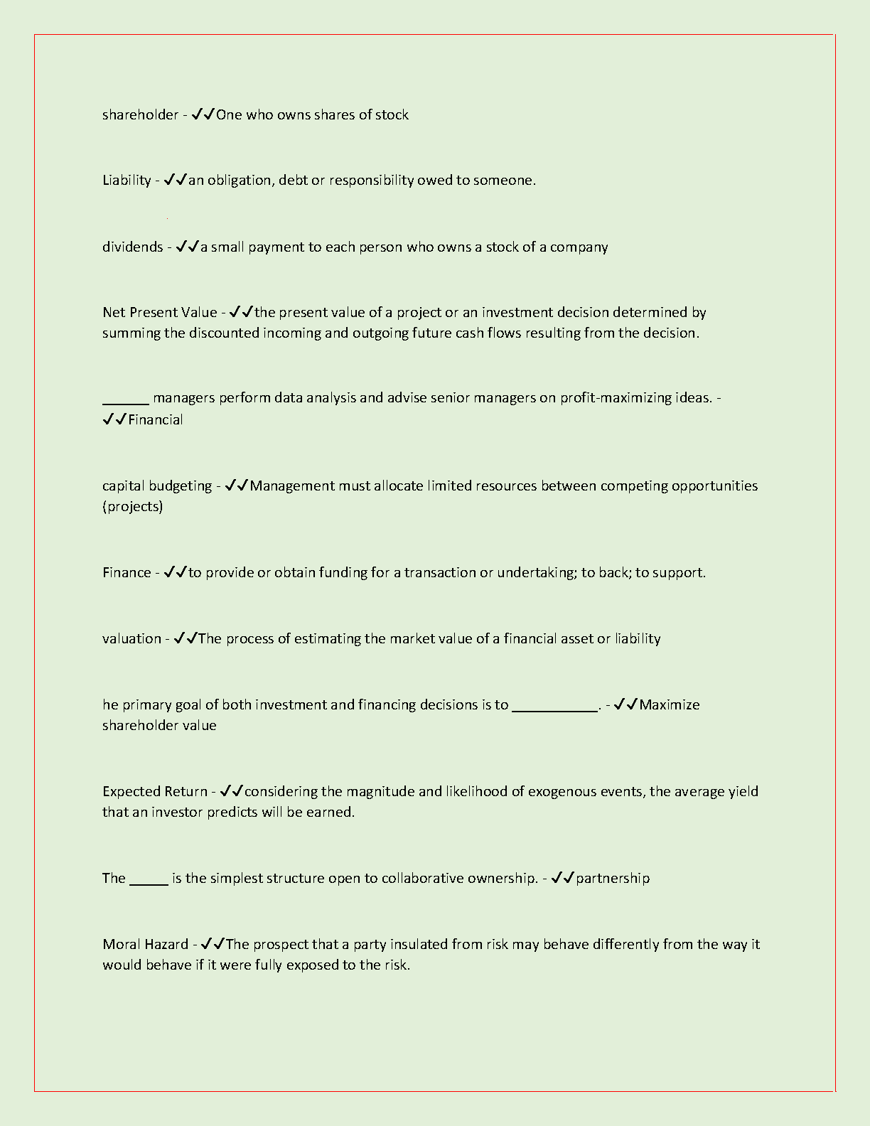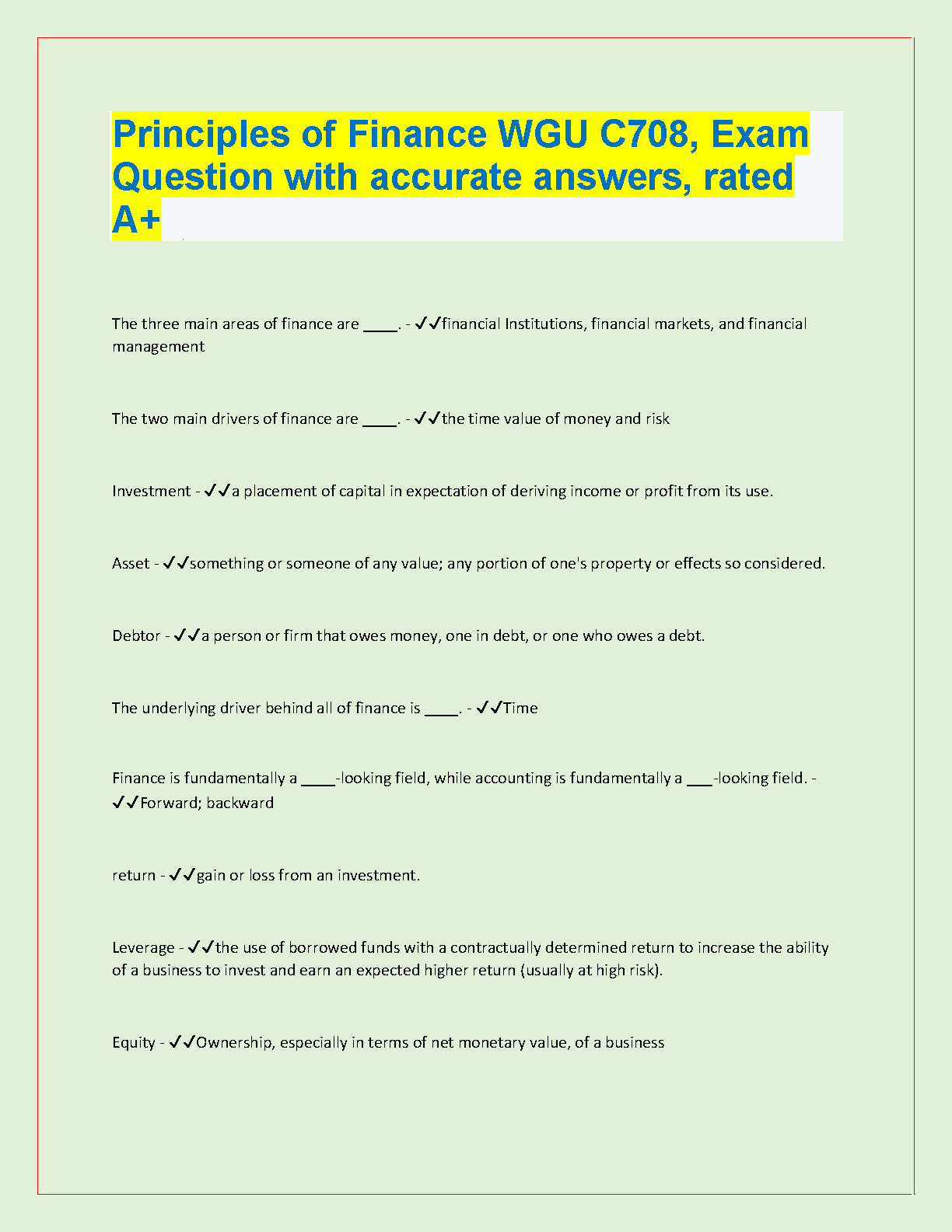 WGU C708 Principles of Finance Exam Question with accurate answers, rated A+ for 2024/2025